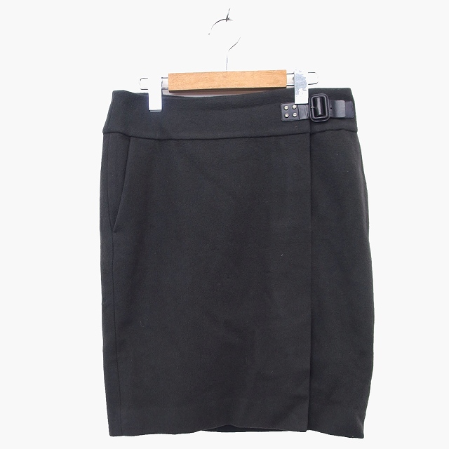 【中古】アドーア ADORE タイト スカート ラップ 膝丈 ウール 毛 牛革 ベルト メルトン タック 38 ダークグリーン