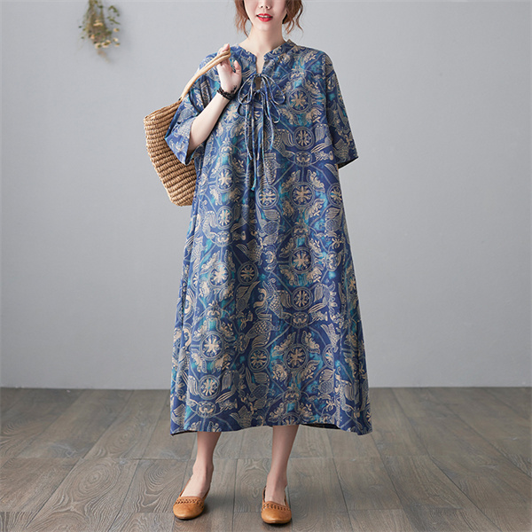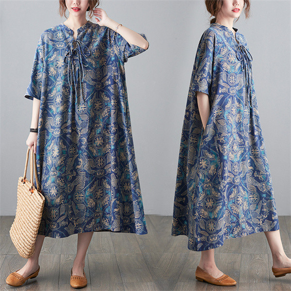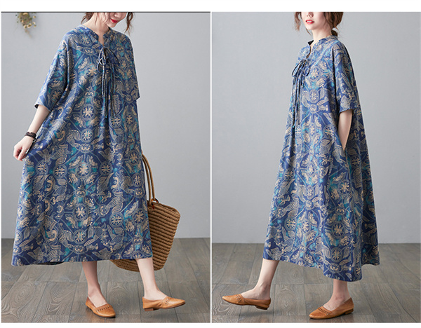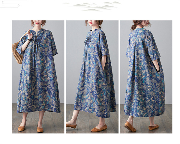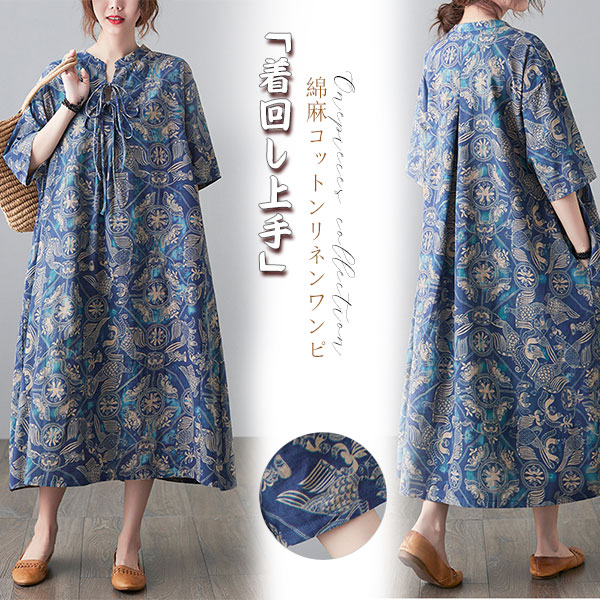 爆売中 綿麻 コットンリネン ワンピース ロング 長袖 花柄 レディース ロング丈 体型カバー ゆったり 綿麻混 秋 大きいサイズ30代 40代