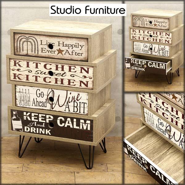 【ATC】 アメリカン雑貨 組立家具スタジオファニチャー 4段キャビネット002 ポップテイスト ローチェスト チェスト 引き出し 収納家具 幅45cm 奥行29.5cm 高さ65cm アメカジ アメリカンテイスト オールドアメリカ 50年代