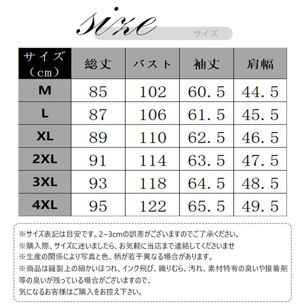 - スーツに羽織るコートを探していて見つけた商品です。価格も手頃でお求めやすくすぐに注文しました。ブラック色を探していたので見つかって良かったです。まだ商品は手元にありませんが届くのがとても楽しみです。その後サイズの相談などの問い合わせを何回かしたのですが、毎回必ず返信をして頂けて、商品到着の目安などもわかり大変ありがたかったです。遅くとも年内には届きそうです。今日商品届きました。かなり日数は掛かりましたが(海外発送の商品だった為)無事に手元に届きました。早速開封してハンガーに掛けて全体を見た所、ほつれや色褪せなども無く奇麗な状態でした。また、商品を着てみようと手に取った時に結構重さがありました。ですが!届いてみたら生地がペナペナな商品だった物を購入した経験があって、価格が安かったことで飛びついてしまい失敗したことがあったので…商品の画像を見て判断して買う訳ですが、生地の感じなどは判らないので、価格に惑わされること無く今回購入したこの商品は失敗したくなかったので、お店に購入前に連絡をしてサイズの相談などの連絡を何回かやり取りさせて頂いて、自信を持って注文出来ました。今回購入したこの商品は生地も大変に厚く寒い冬の時期活躍しそうです。スーツの上に羽織るのに購入しましたが、スーツの上から着ても窮屈なことも無くピッタリなサイズで良かったです。購入前の事前相談でサイズ選択のアドバイスをお店から提案して頂いていたので、安心して注文出来ました。ただ生地が厚い分ちょっと重量が重いなぁと感じました。またかなり到達まで時間は掛かりましたが、何度か荷物の進捗状況などの連絡も頂いていたので、到達の目安は立てやすかったです。追跡番号付きだったので、進捗状況をリアルタイムで知ることも出来たのが良かったです。明日から早速通勤時に着ていきます!