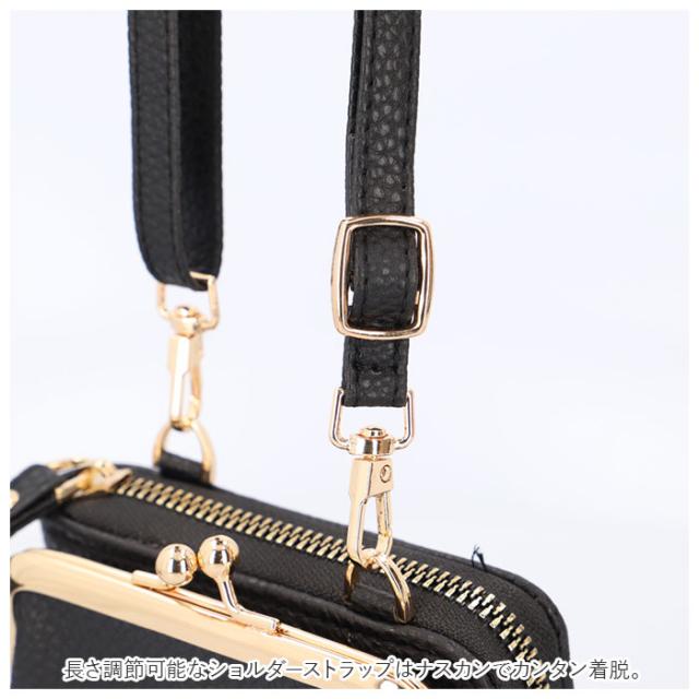 お財布ショルダー レディース 通販 ガマ口 合皮 お財布バック ショルダーポシェット がま口ポシェット メタルパーツベルト 財布 ミニバッグ ショルダー ポケット ポーチ 小さい財布