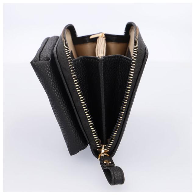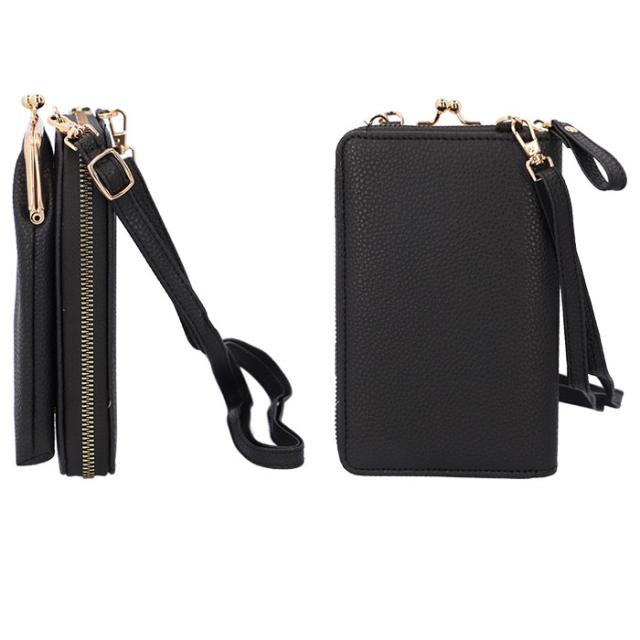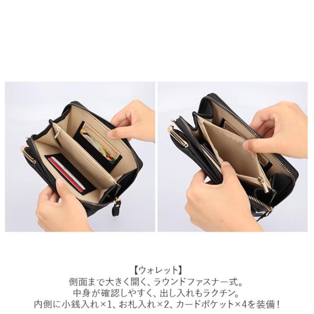 | 商品説明 | ・スマホポーチとウォレットが一体化♪「合皮ガマ口お財布ショルダー」が登場。 ・ちょっとそこまでのお出かけ時にサッと持ち出して、身軽にお出かけ★ ・シボ感のあるフェイクレザー素材に、ゴールドカラーの金具を組み合わせた、高級感のあるデザイン。 ・【スマホポーチ】 ・片手で簡単開閉できる、がま口タイプ。 ・スマホだけでなく、リップや薄手のハンカチ、メイク直し用のスリムなコンパクトなども入るサイズ感。 ・【ウォレット】 ・側面まで大きく開く、ラウンドファスナー式。中身が確認しやすく、出し入れもラクチン。 ・内側に小銭入れ×1、お札入れ×2、カードポケット×4を装備! ・長さ調節可能なショルダーストラップはナスカンでカンタン着脱。 ・スマホポーチとウォレットはスナップボタンで取り外しOK!単体使いもできて使い勝手抜群。 ・必要最低限の小物をまとめて持ち歩けるから、ライブや旅行時も活躍♪ |