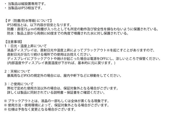 ※このディスプレイはタテ設置専用設計です