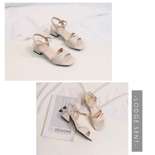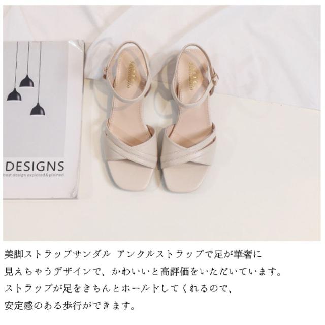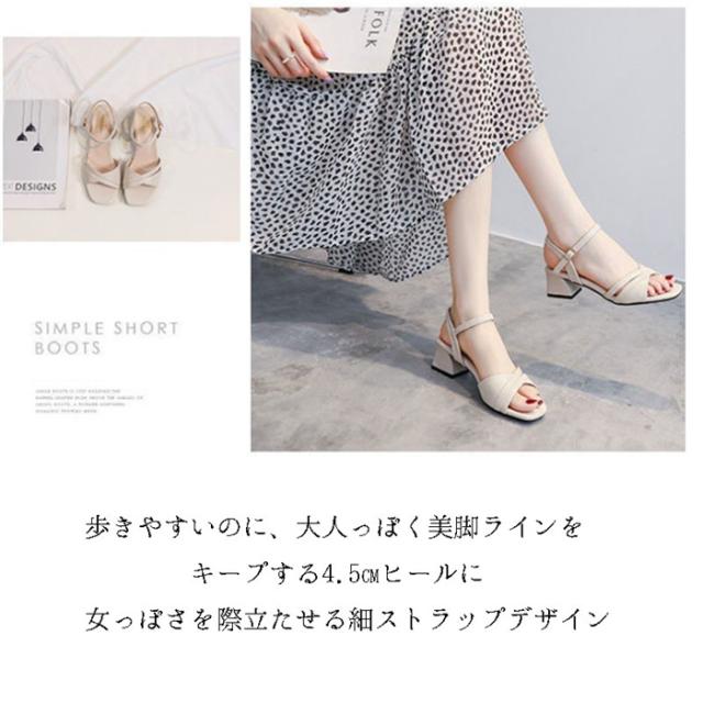 ■足首を細く見せる華奢なアンクルストラップ付き。