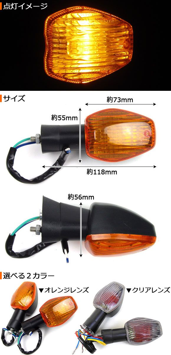 ウインカー ホンダ CBR600 選べる2カラー 入数:1セット(左右) AP-BP-S011 2輪 カラー: オレンジ クリア