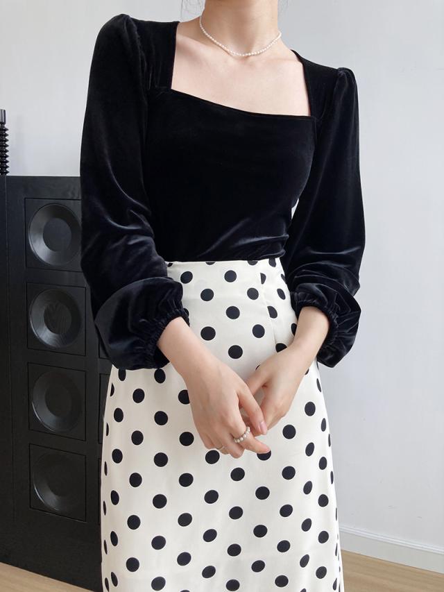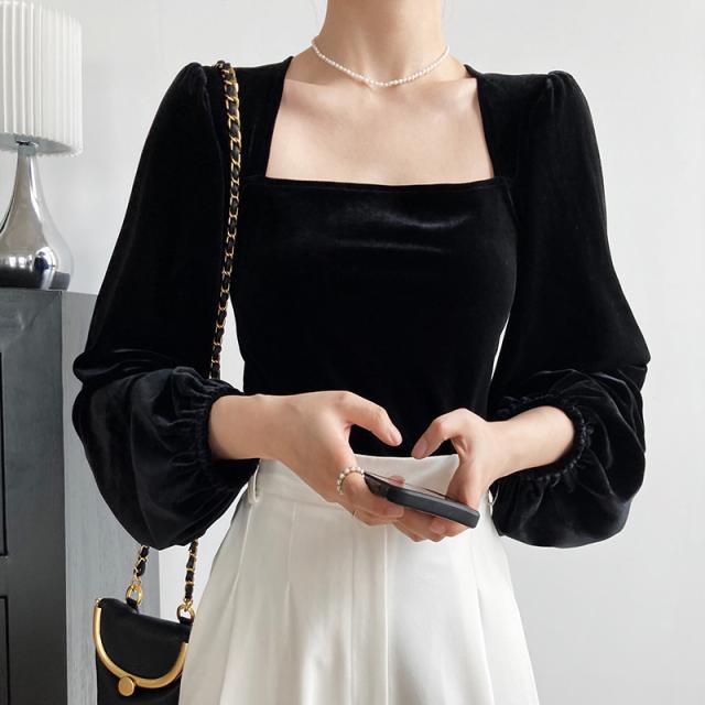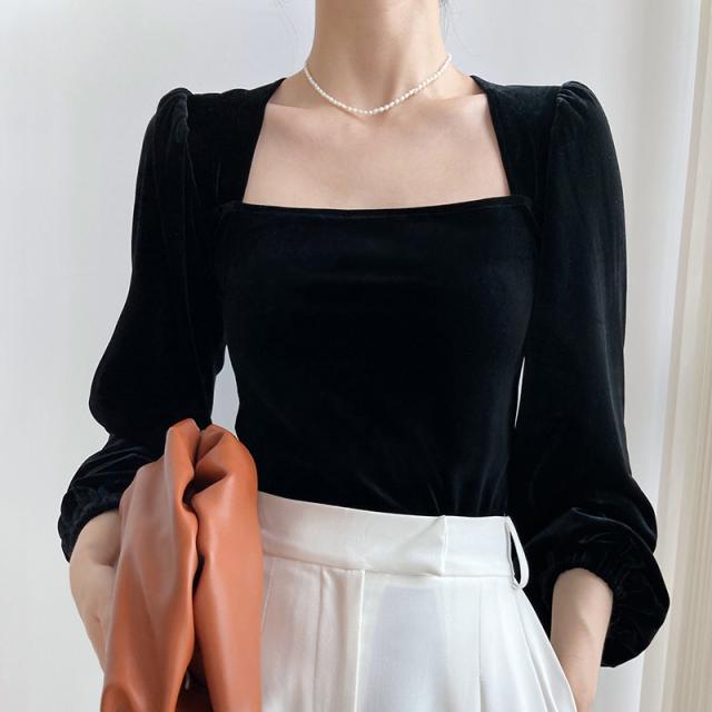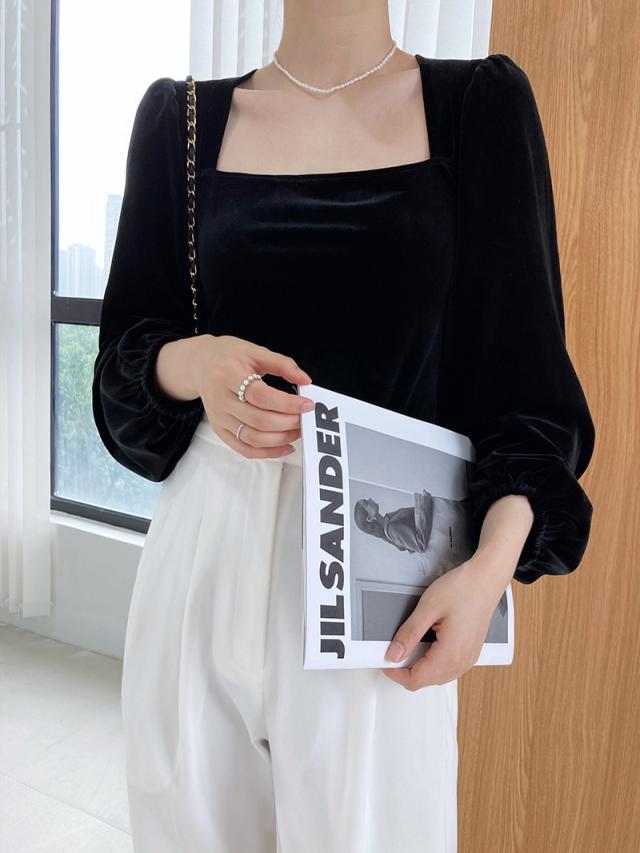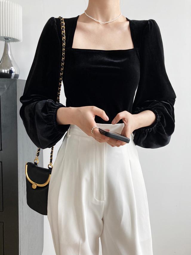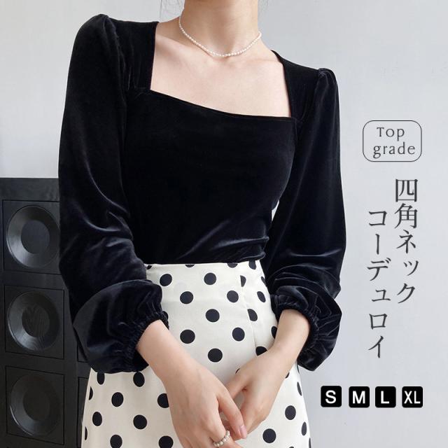 シャツブラウス レディース 長袖 トップス きれいめ 春夏秋 オシャレ セレモニー 四角ネック ボリューム袖 コーデュロイ 上品