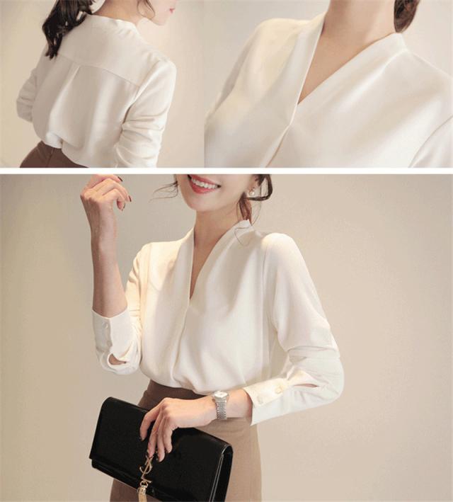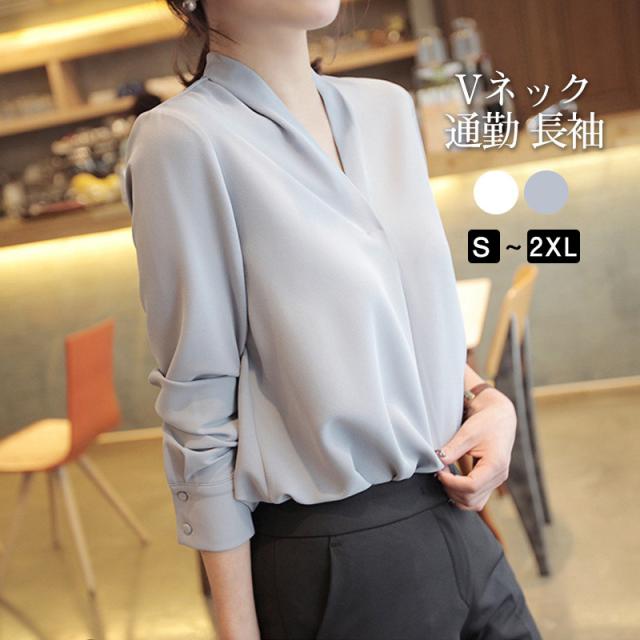 激安 シャツブラウス レディース きれいめ 春夏秋 オシャレ セレモニー シフォン オフィス 長袖 トップス Vネック 上品 大人
