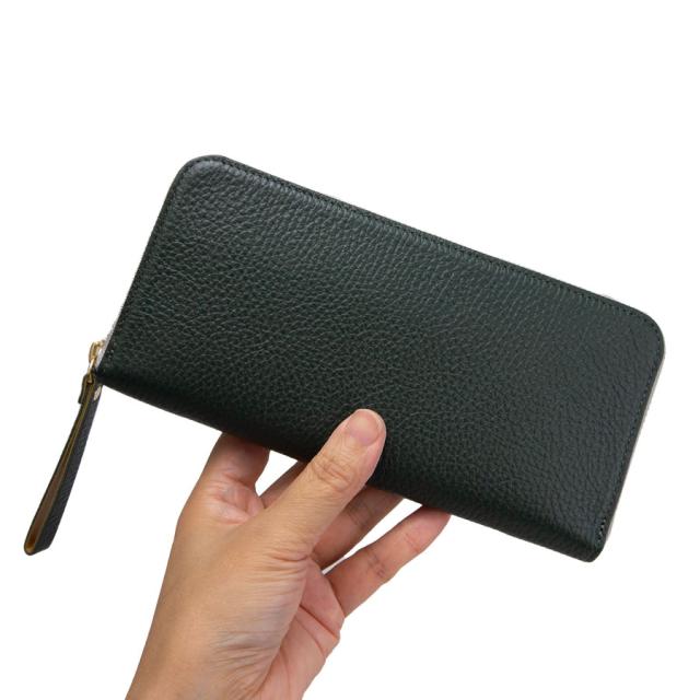 ■上質なイタリアンレザーのラウンドファスナー長財布です。細かな型押しを施した牛革は傷が目立ちにくくきれいな状態を長く保ちます。ファスナーはYKK社製で開閉がスムーズ。金属本来の輝きを持続し耐食性にも優れています
