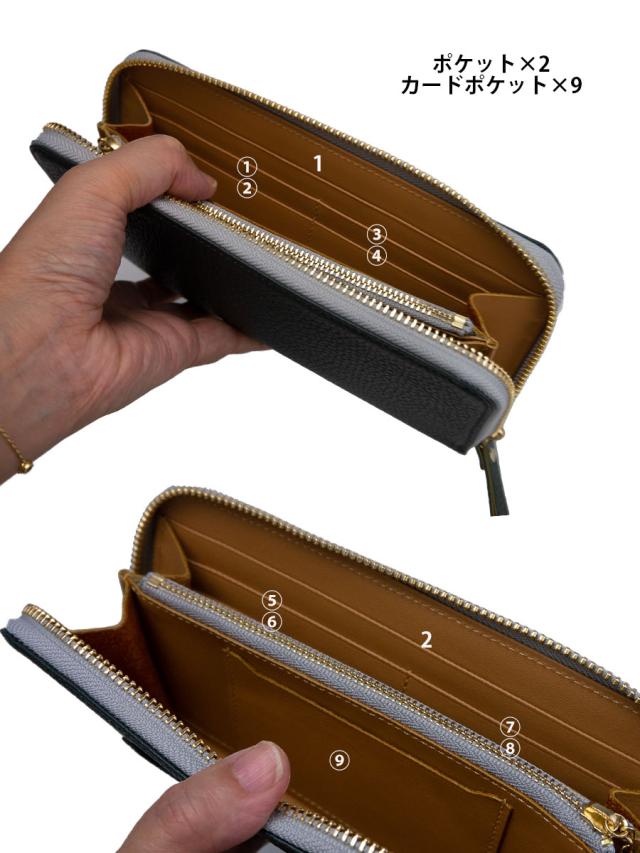 ■ポケットの数:【背面】ポケット×1【内部】カードポケット×9、フリーポケット×2、札入れ×2、小銭入れ×1
