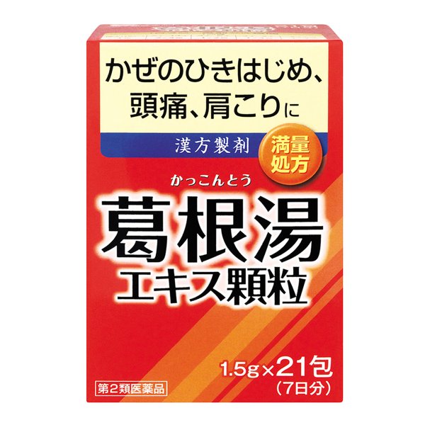 葛根湯エキス(カッコン 4.0g、マオウ 3.0g、タイソウ3.0g、ケイヒ 2.0g、シャクヤク 2.0g、カンゾウ 2.0g、ショウキョウ 1.0g):2.55g