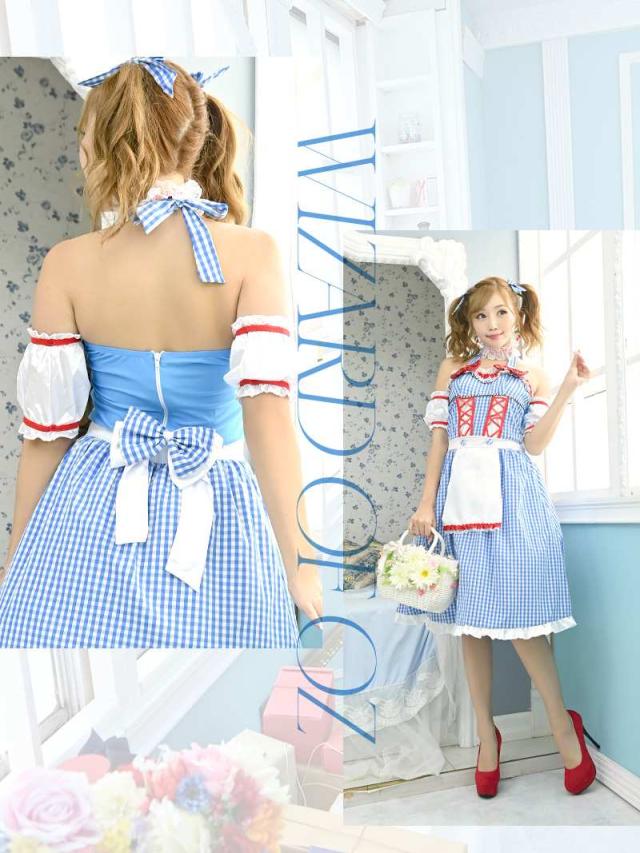 ☆可愛いギンガムチェックにフェミニンなリボンやフリルをあしらったドーリーコスチュームはひざ丈のフレアワンピースになっておりさり気なく下半身をカバーしてくれます!またバルーン袖風のアームカバーが二の腕も可愛く隠してくれる体型カバーも期待できちゃうハロウィンコスチュームです♪