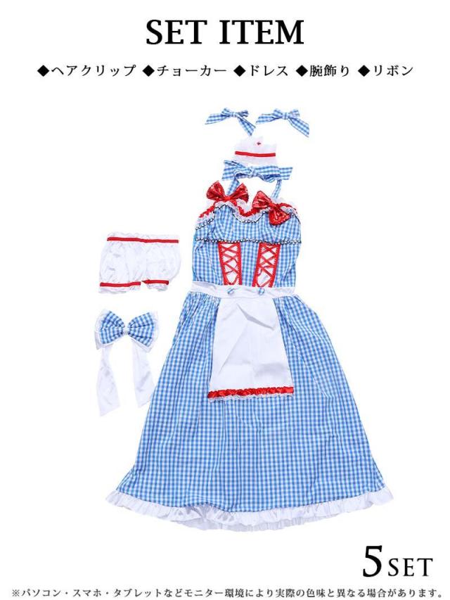 ☆りぼんのヘアアクセサリーなどを含むコスプレ5点セットでお届けなので急なコスプレイベントやハロウィンイベントにも慌てず可愛いコスプレを完成させることができるハロウィンコスプレセットです♪