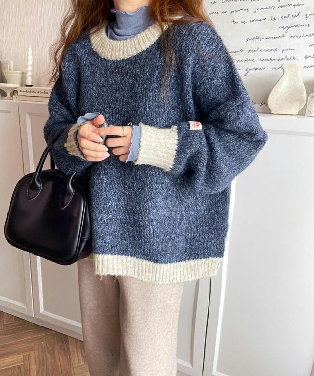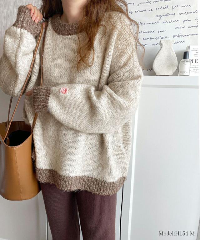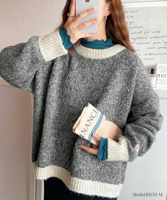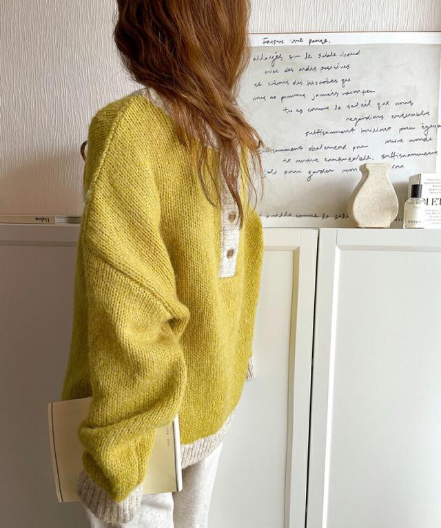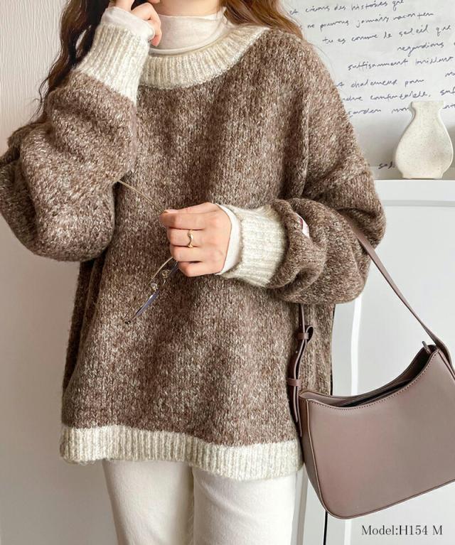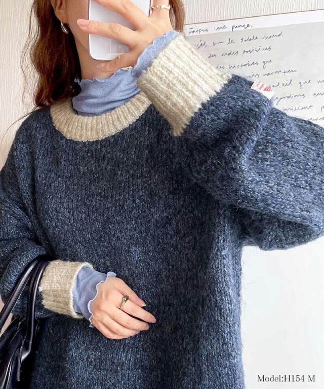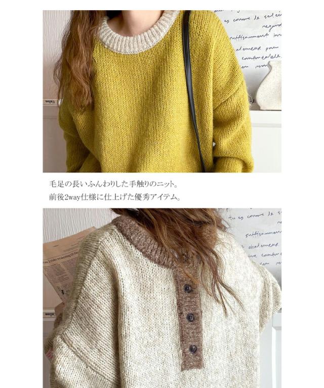 ★《JaVaジャバ コラボ》もちっと癒され。2wayミックスカラー糸バイカラーヘンリーニットプルオーバー★