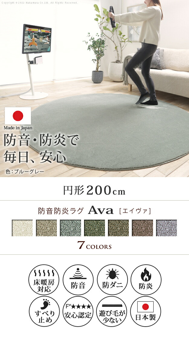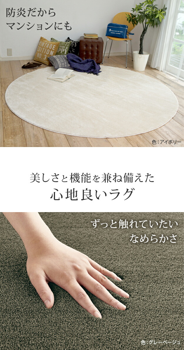 ラグ ラグカーペット 円形 防音防炎ラグ エイヴァ 円形200cm リビング 高級感 おしゃれ 北欧 シンプル 無地調 極細 ホットカーペット対応 オールシーズン 防音 防ダニ 防炎 すべり止め 日本製 カットオーダー