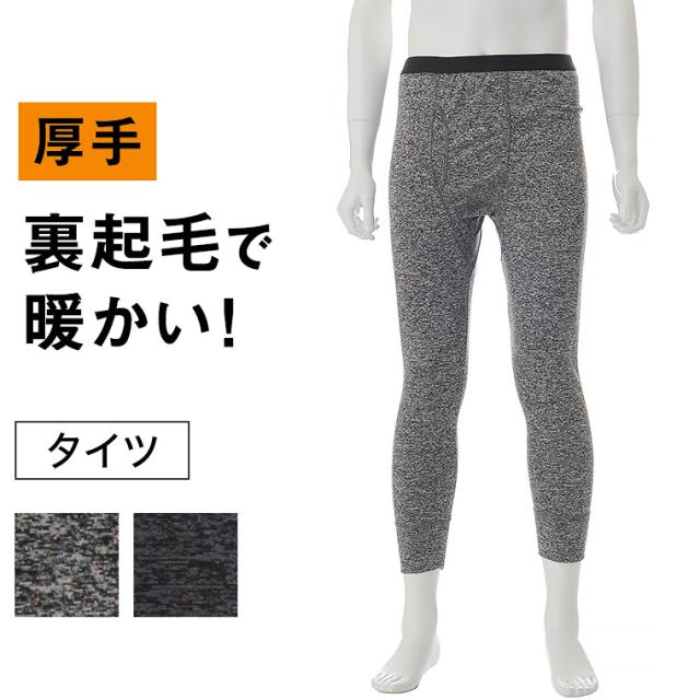 厚手 裏起毛 タイツ インナー 長袖 杢カラー メンズ 秋冬 暖かい あったか あたたかい 厚地 厚い 保温 防寒 ストレッチ 杢柄 男性 紳士 下着 肌着 P0385C-RT