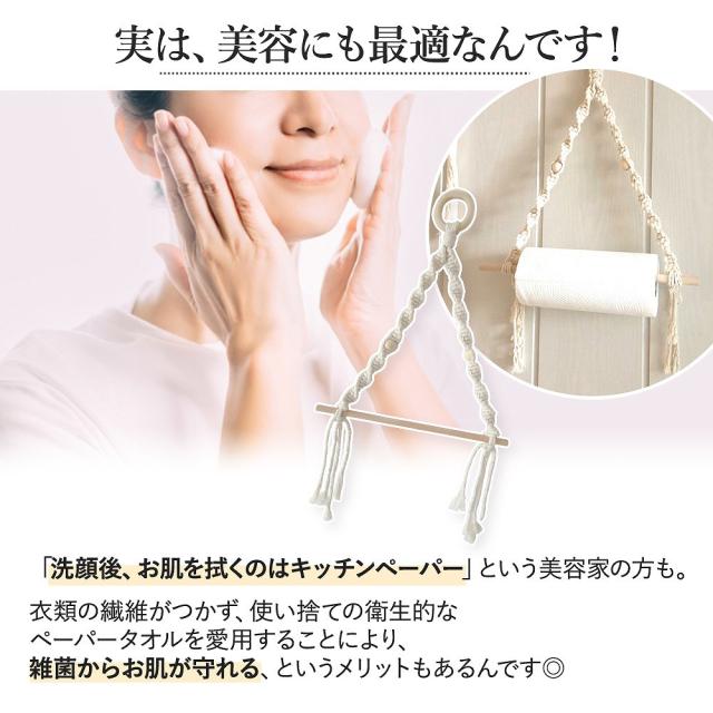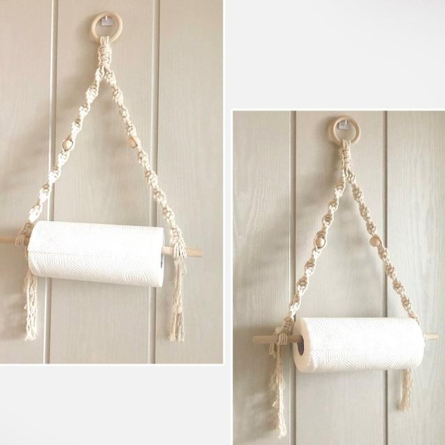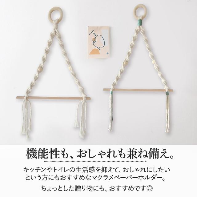 マクラメ ペーパーホルダー キッチン リビング トイレ ナチュラル おしゃれ 北欧 収納 サイズ 大きい 小さい 人気 ホワイト グリーン シンプル 木製 かわいい agesugi_snk
