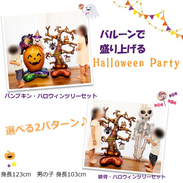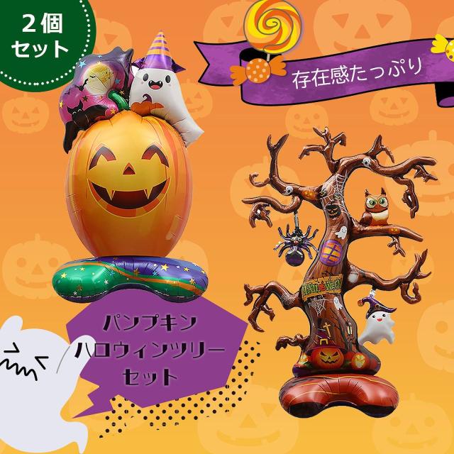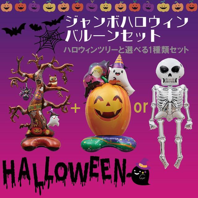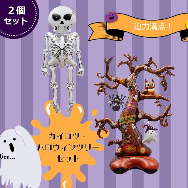 ジャンボハロウィンバルーンセット 2個セット かぼちゃ 骸骨 ハロウィンツリー 木 風船 ビックバルーン ディスプレイ イベント SNS映え 撮影 店頭 パーティー agesugi_sog