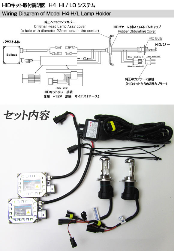 HIDキット 8000K 高品質 HI/LO スライド切替式 H4 厚型バラスト APHIDK8000K
