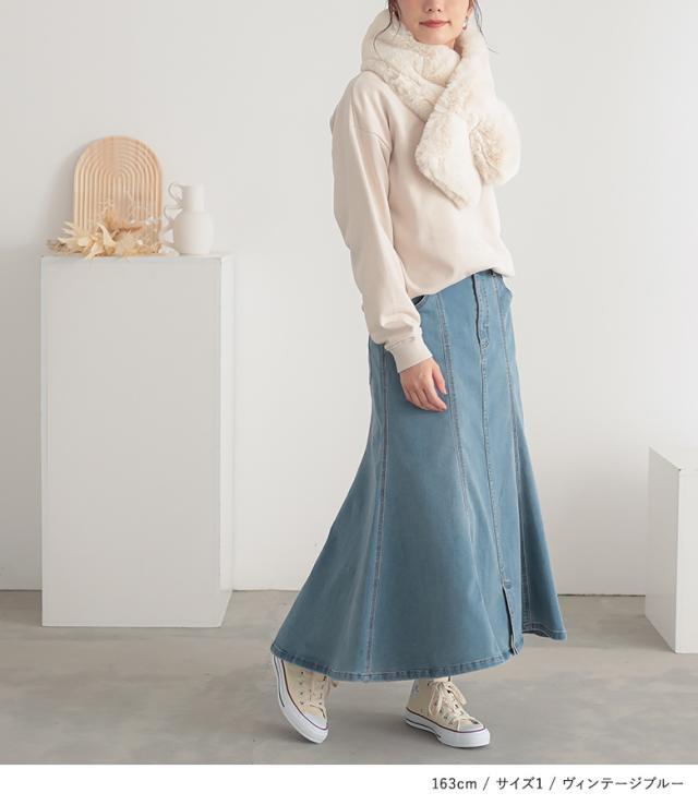 『パウダー裏起毛デニムマーメイドスカート』【オシャラボ】 【メール便不可】【30】[デニムスカート レディース 秋冬 ロング マキシ 裏起毛 ストレッチ 伸びる パウダー加工 防寒 あったかボトムス オシャレウォーカーラボ sin0085]
