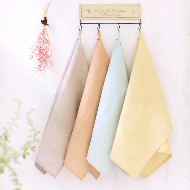 綿と麻がミックスされた心地良い肌触りの生地です。つい手に取りたくなる、日常使いに最適なキッチンクロスです。