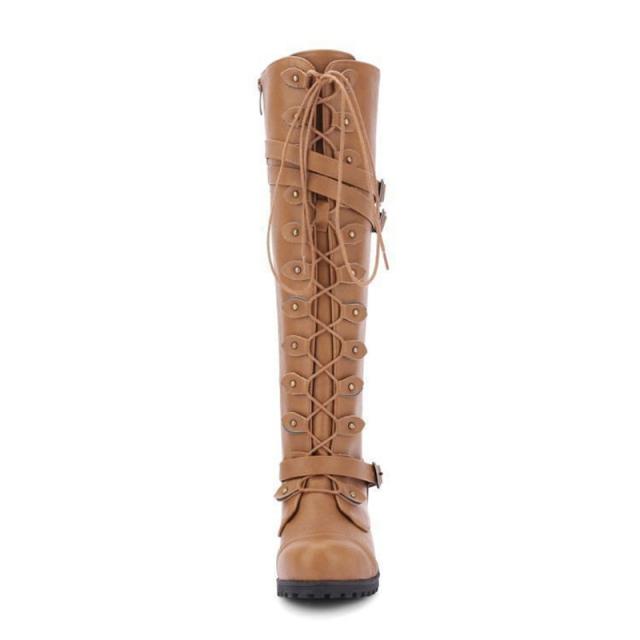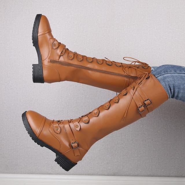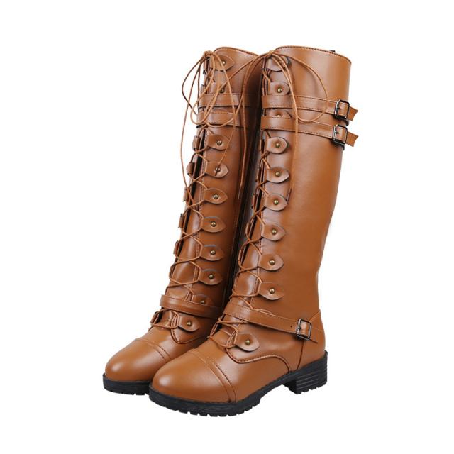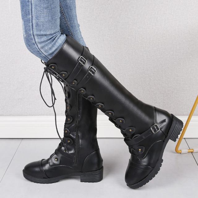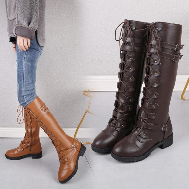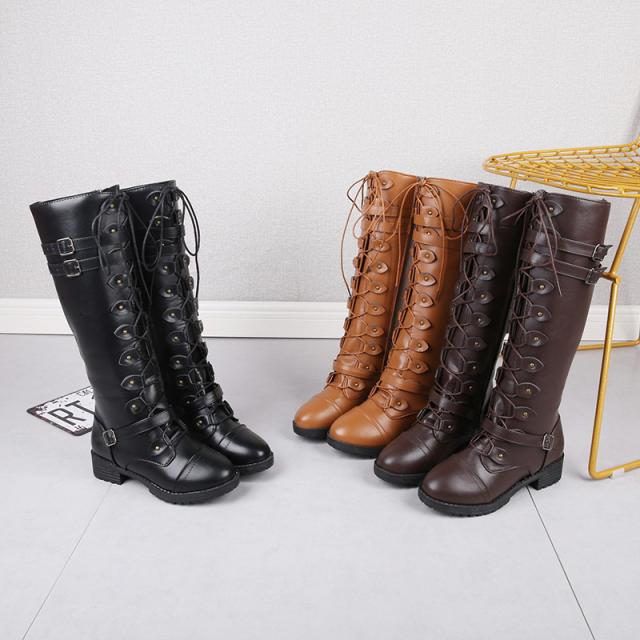 ロングブーツ レディース 美脚 長靴 秋 冬 ジョッキーブーツ 厚底 太ヒール 編み上げ レースアップ 保温 あたたかい 通気性