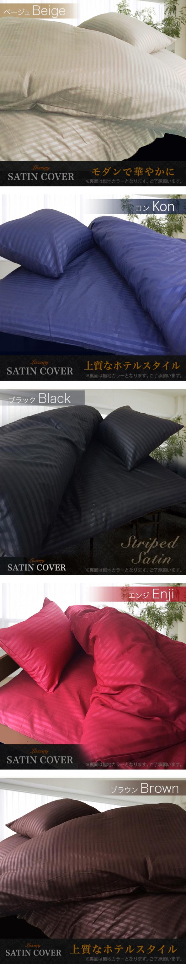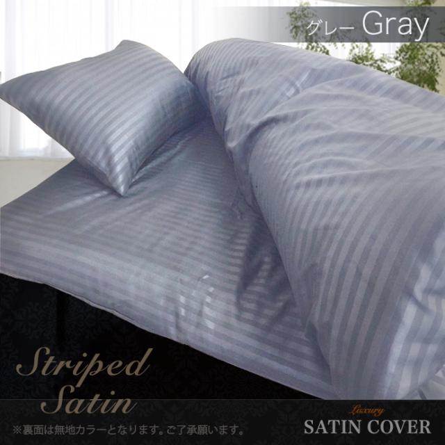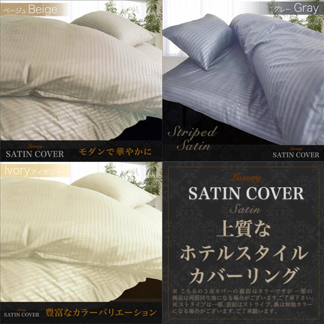 ◆【ホテル仕様】高級な光沢 優しい肌触り サテン調ストライプ 布団カバー