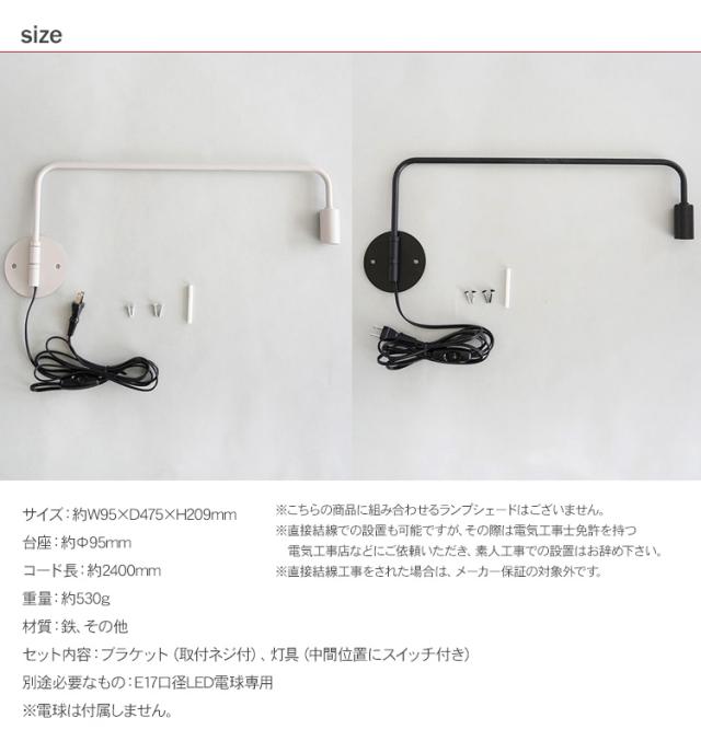 ブラケット内部に電気配線が内蔵されている一体型タイプなので、別途灯具をご用意いただく必要はなく、片側のプラグをコンセントに接続してご使用頂けます。