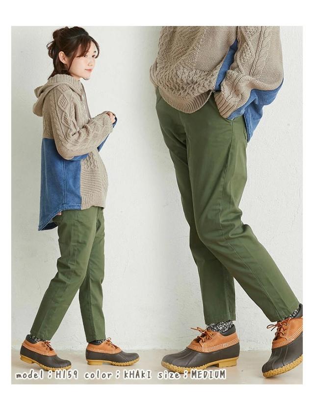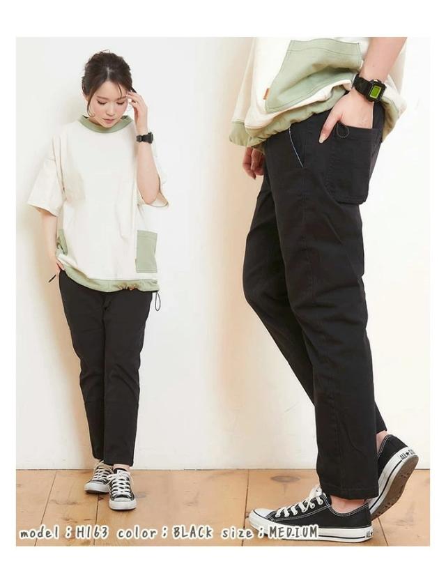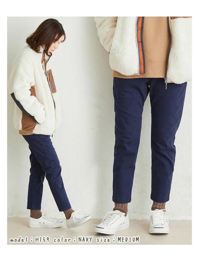 フロントがファスナー付きの前開き仕様へアップデート。もっと楽に着用できるようになりました!お尻周りのパターンを見直し、シルエットが綺麗に見えるように改善しています。丈をくるぶしまでのアンクル丈へアップデート。通年で使いやすくなっています。ストレッチ素材にウエストゴム、180度開脚だって楽々可能なガゼットクロッチで動きやすさ◎腿周りはゆったりと楽チン、裾に向かっては細身にテーパードしているのでスッキリと見えます。