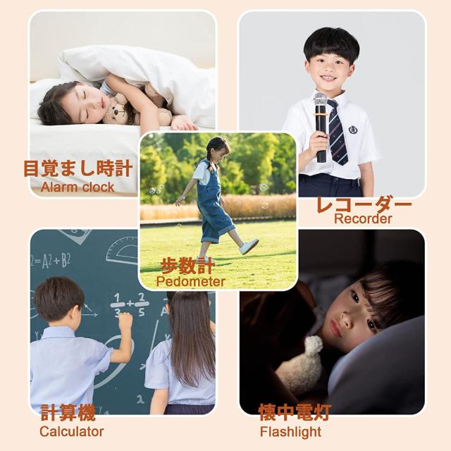 【目覚まし時計と学校モード】ストップウォッチとカレンダーを通じて時間の概念を探求します。学習では、シミュレーション時間とデジタル時間を区別して、子供が正常な勤務時間を維持できるようにします。異なる時間帯でアラートを設定できます。