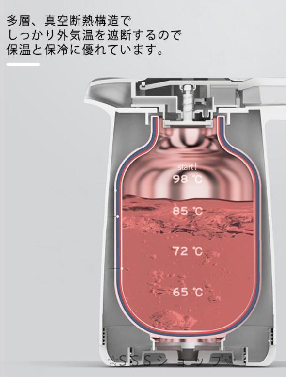 - デザインが気に入って購入しました。機能も素晴らしく、長時間保温が可能な事にビックリです。夜お湯を沸かして入れておいて、朝そのままコーヒーを淹れるのに使えますし、その後、昼にも比較的温かいお湯として飲めます。夕方になり、40℃前後(肌感覚ですが)くらいあるので、日頃から白湯を飲んでいる私にはちょうどいい温度で飲めます。