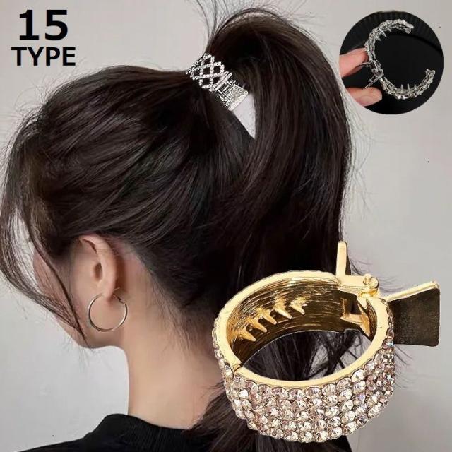 ヘアクリップ ポニーテール レディース 大人 ヘアアクセサリー ポニーリング 髪留め 髪飾り ラインストーン パール風 まとめ髪