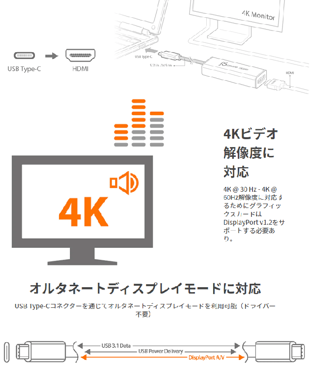 j5 create USB-C to 4K HDMIディスプレイアダプター JCA153J