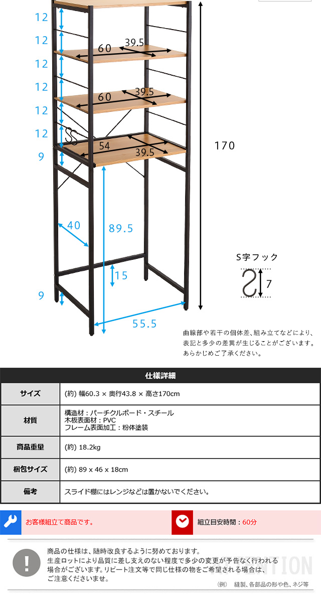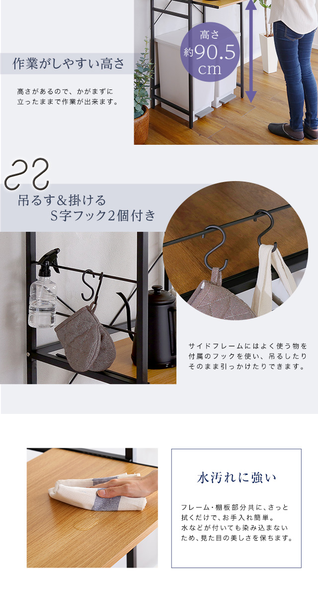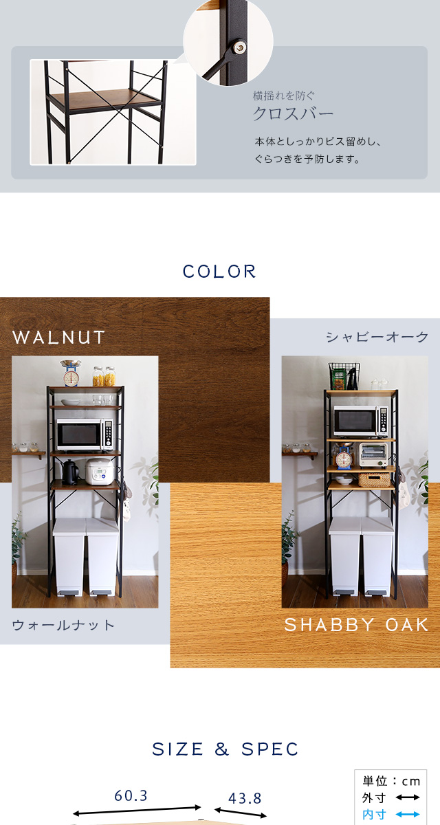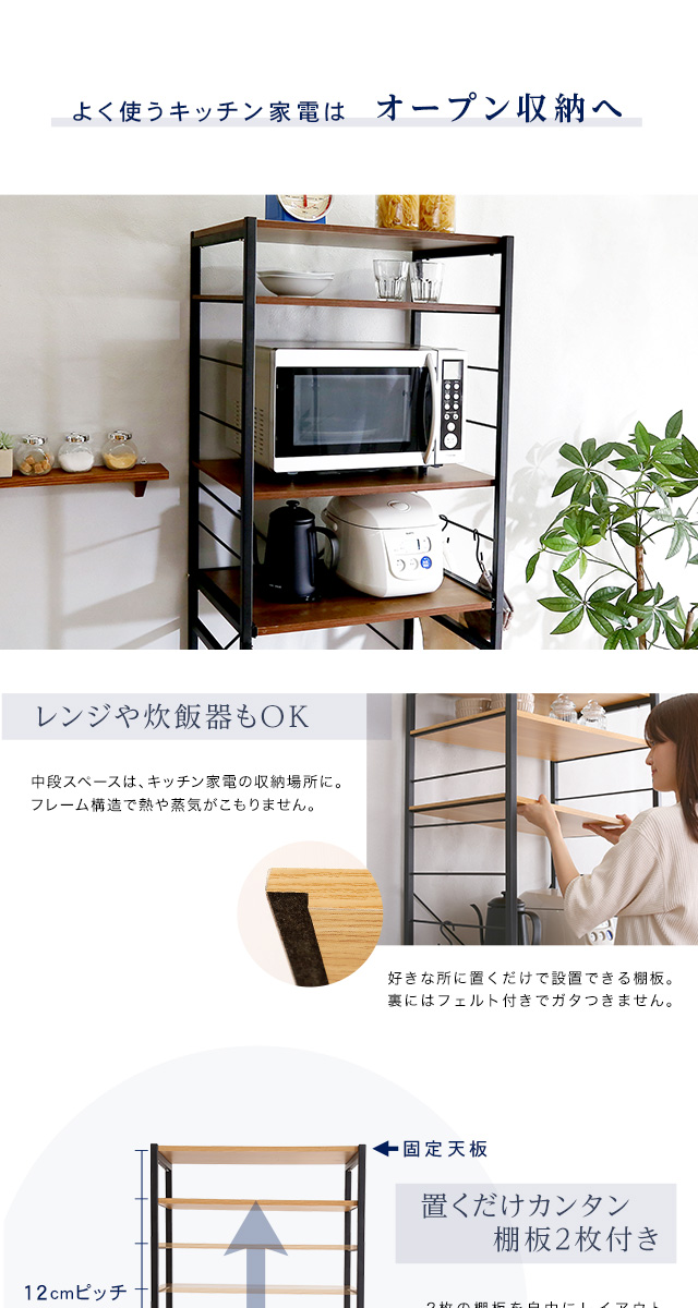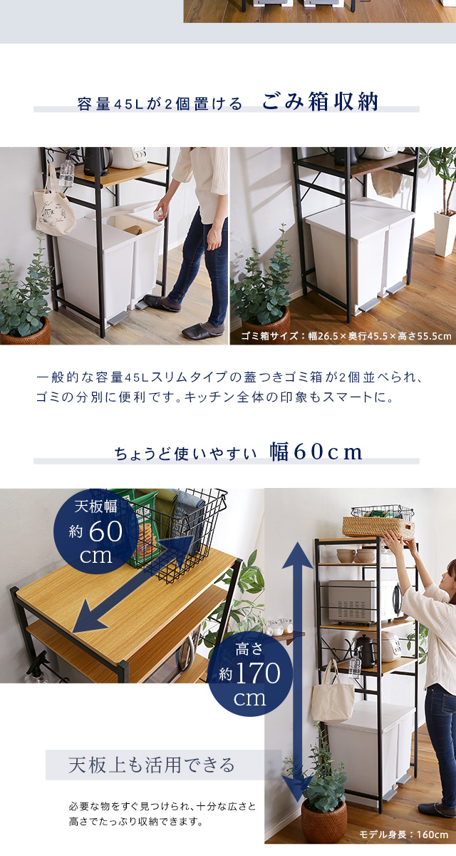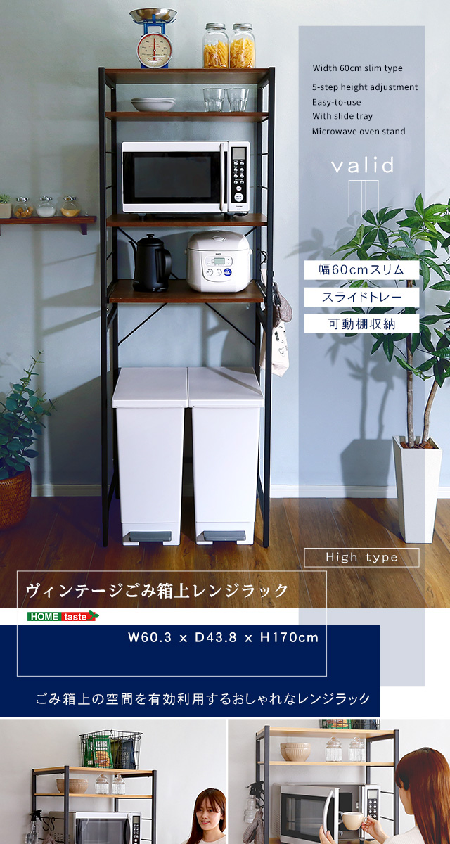 シンプルだけど機能的 アイアンフレーム レンジ台 幅60 ハイタイプ 【送料無料】 レンジボード ゴミ箱上 キッチン家電 収納棚 スライドトレー ウォールナット オーク