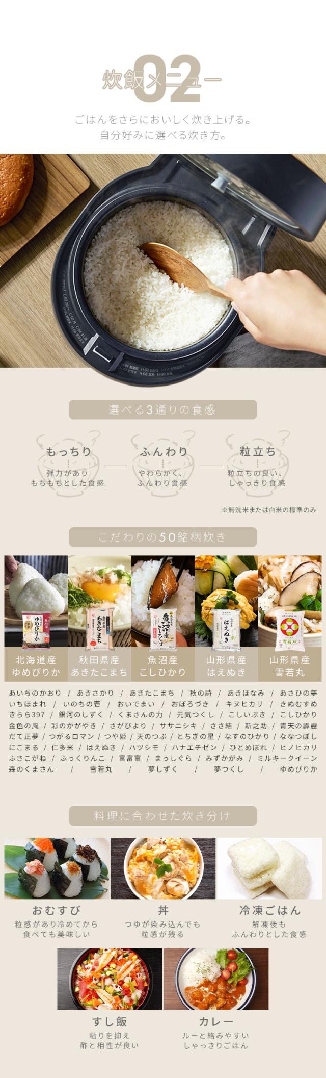 50種類の銘柄に対応した銘柄炊きや、9新米のつやとみずみずしさを引き出す新米コースも搭載。
