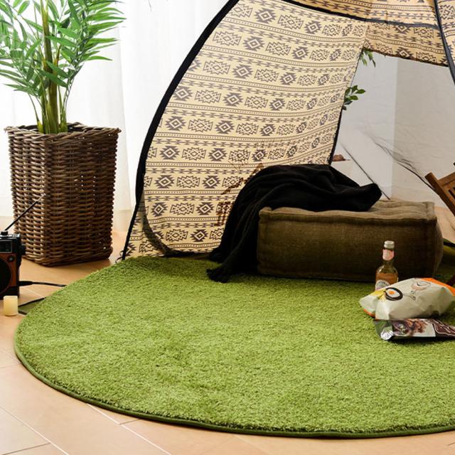 芝生ラグマット 円形 人工芝 シャギーラグ 室内用 屋内用