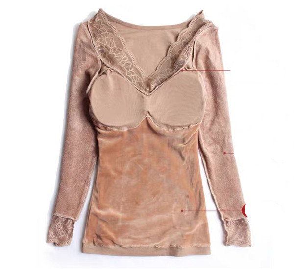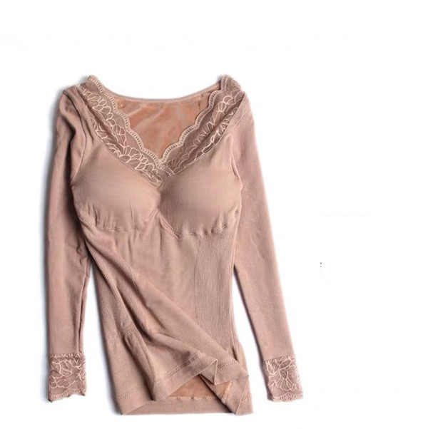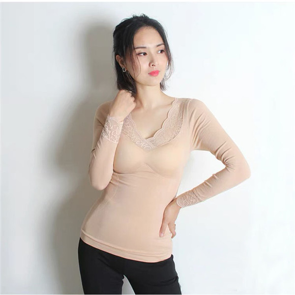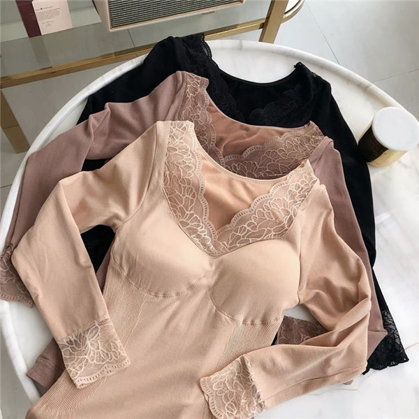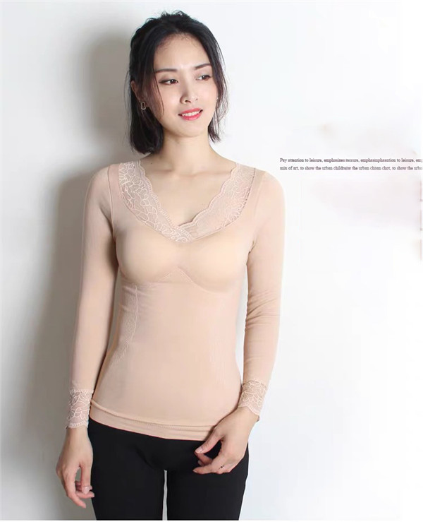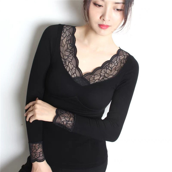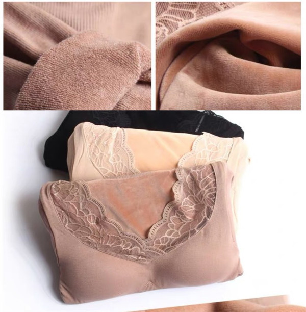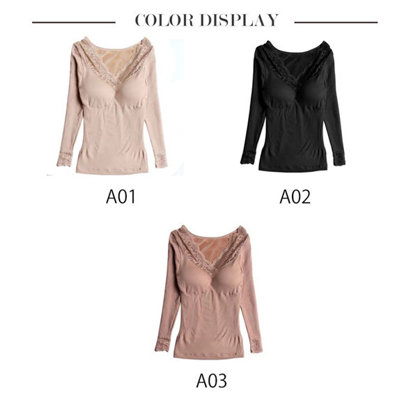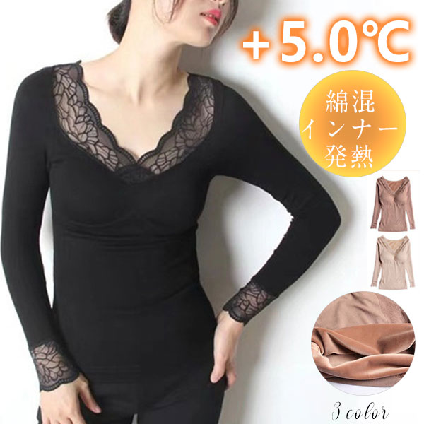 発熱 シャツ インナー 裏起毛 カットソー 極暖 暖かい あったか 保温 レース Vネック 防寒 冬 部屋着 トップス 下着 肌着 レディース