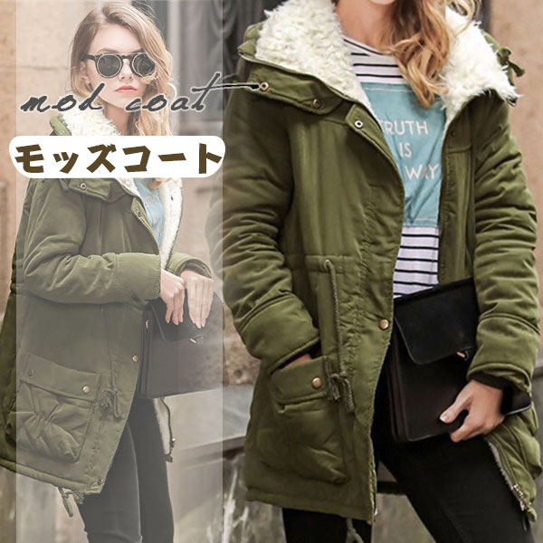 ポイント超超祭利用可 モッズコート レディース ミリタリー 中綿コート 裏ボア モッズジャケット 40代 30代 厚手 アウター 体型カバー フード付き 冬物 暖かい