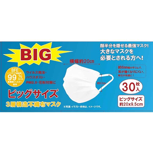 【大きなマスクが必要な方へ】ビッグサイズ 3層不織布マスク 30枚箱入