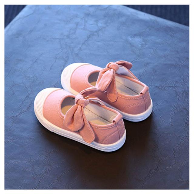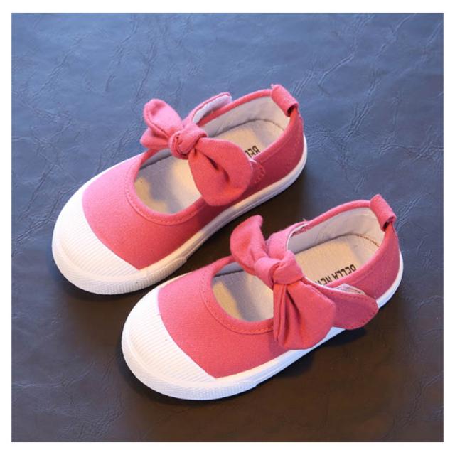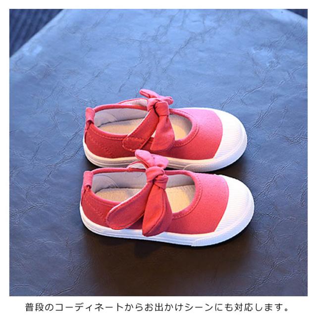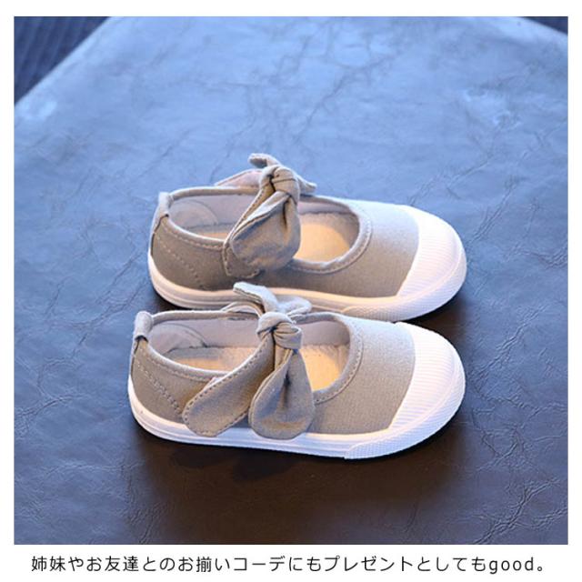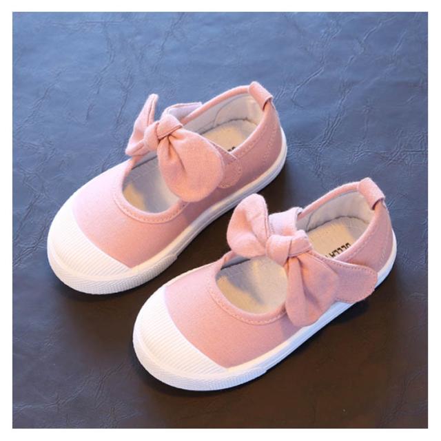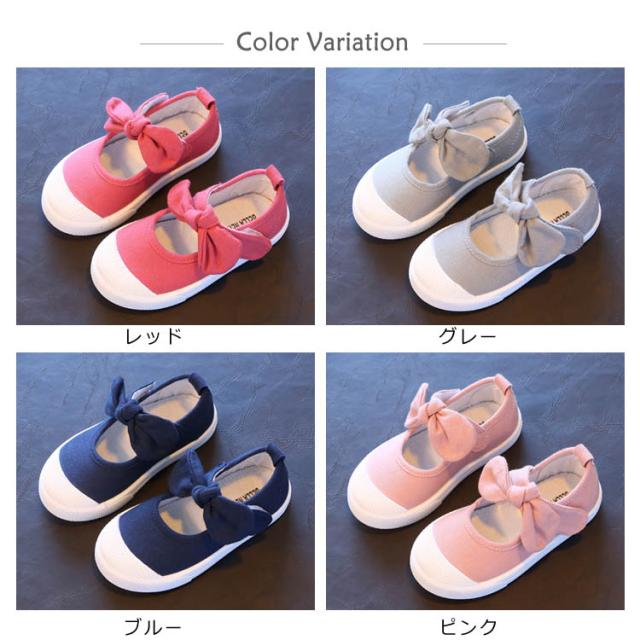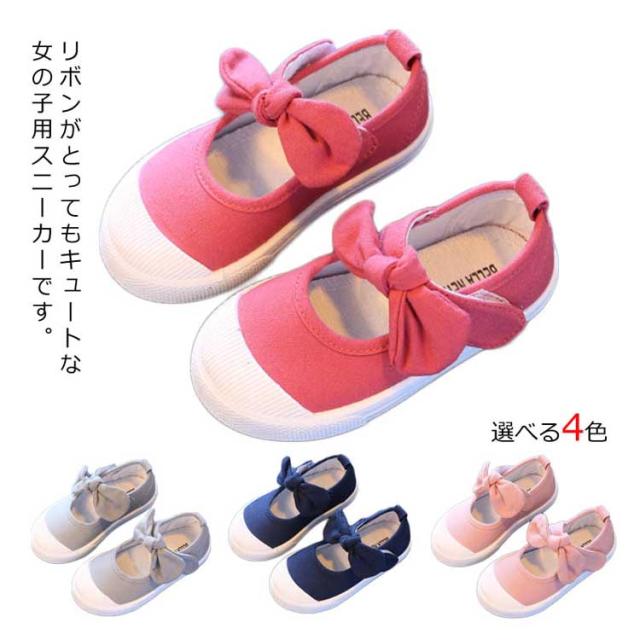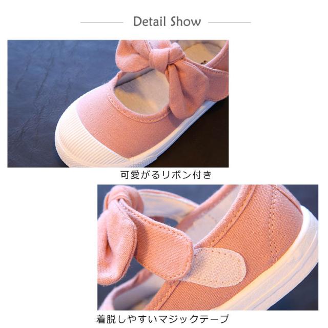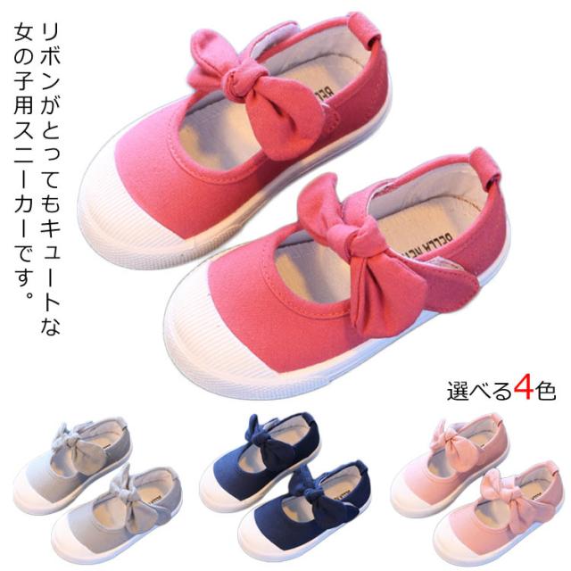 《送料無料》子供シューズ スリッポン キャンバスシューズ 女の子 リボン付き ストラップ キッズ シューズ 履きやすい 滑りにくい 快適 通気 軽量 通学 通園 可愛い 新作