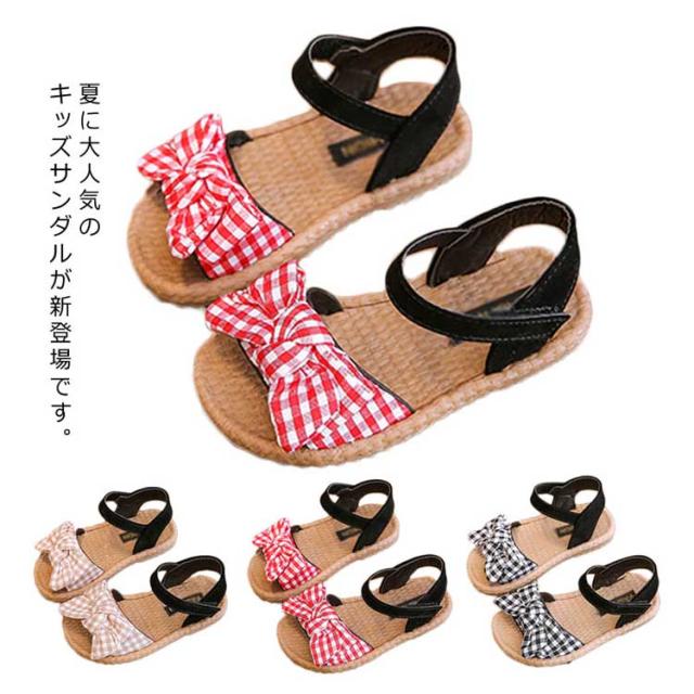 《送料無料》子供サンダル ビーチサンダル 女の子 キッズ リボン ジュニア キッズシューズ 子供靴 夏 プール 海 姫系 女児靴 可愛い リゾート 新作