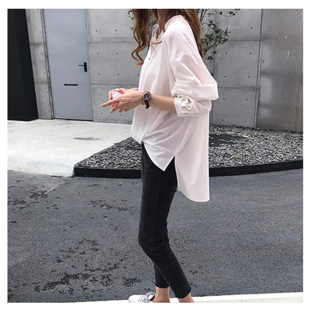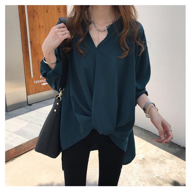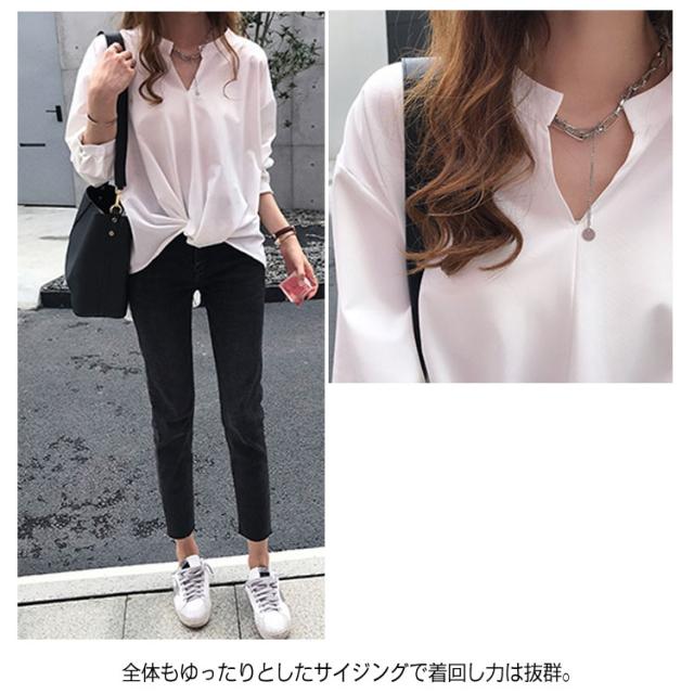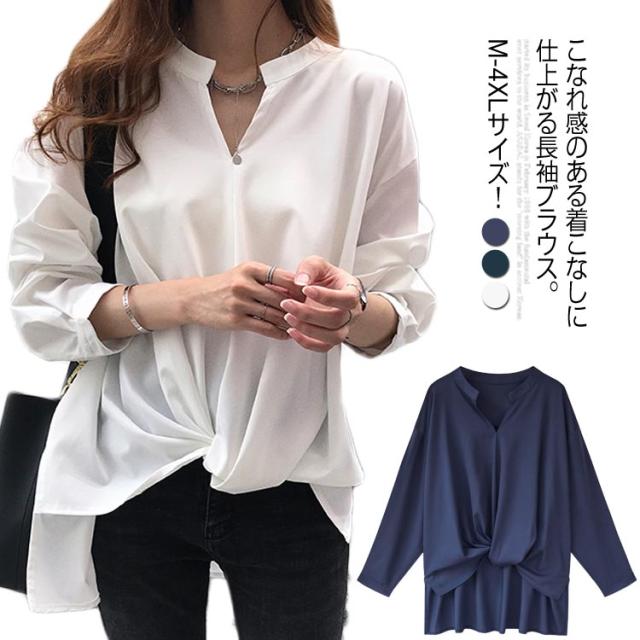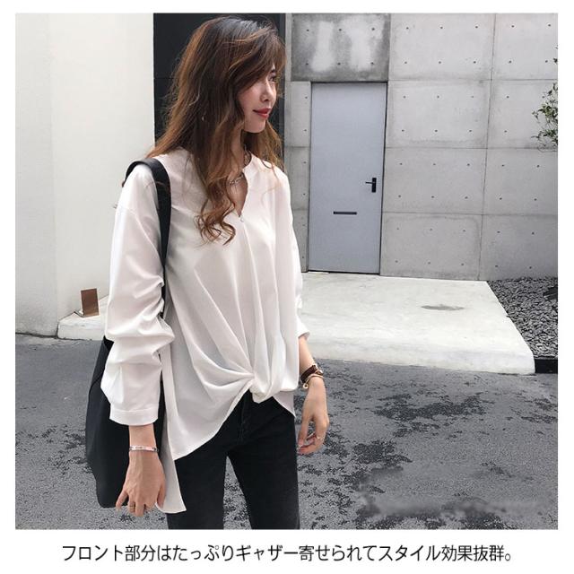 《送料無料》前後の丈感に差をつける。フロントギャザー トップス レディース プルオーバー シャツ ブラウス スキッパー スキッパーシャツ チュニック シンプル 無地 大きサイズ 春 夏
