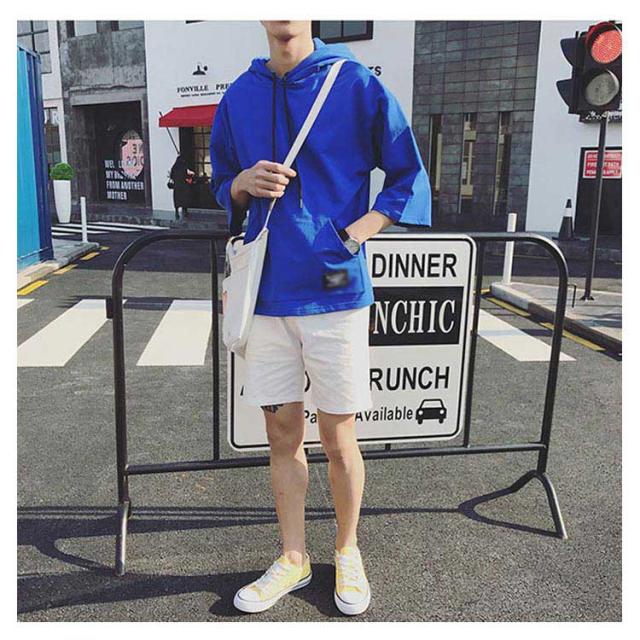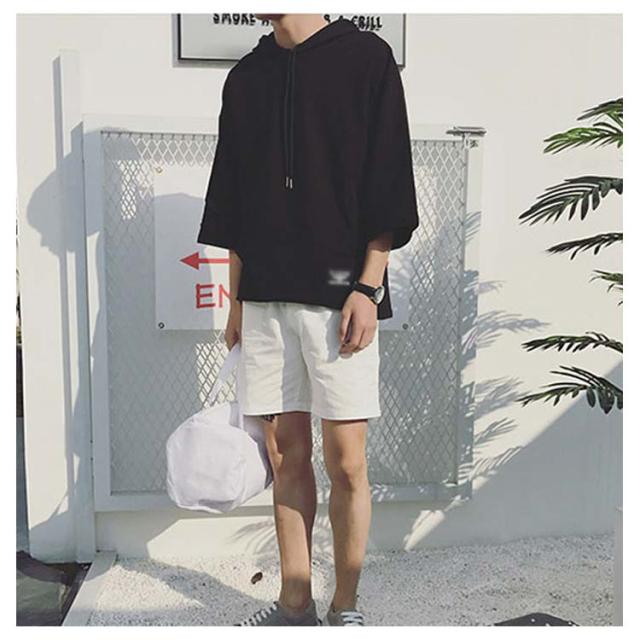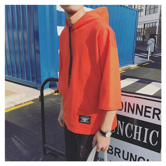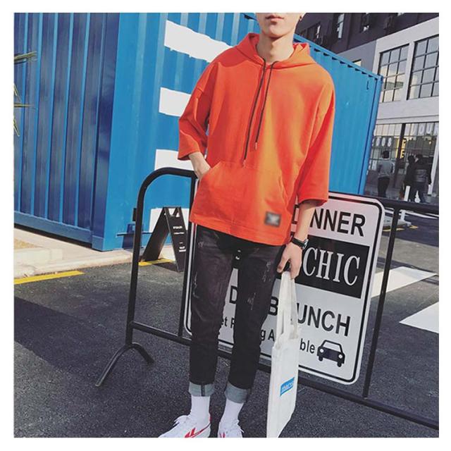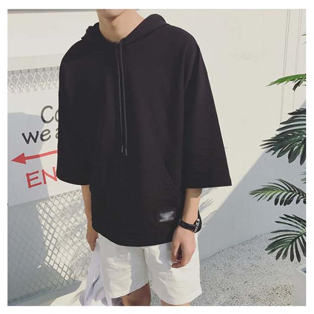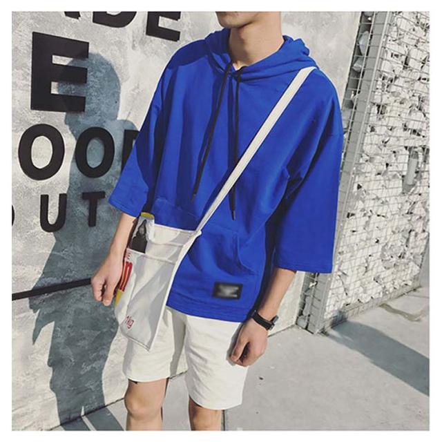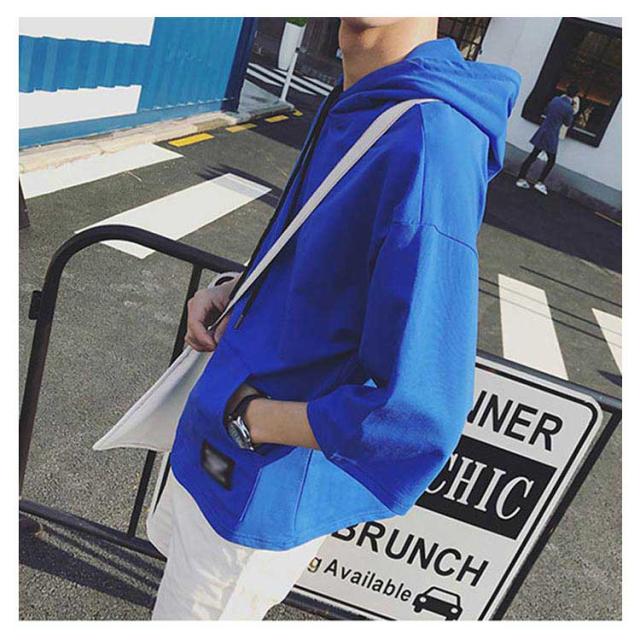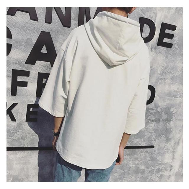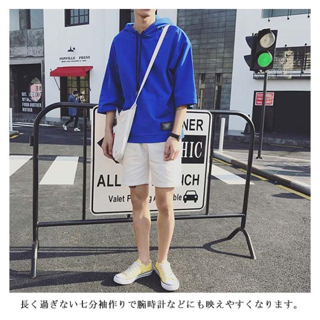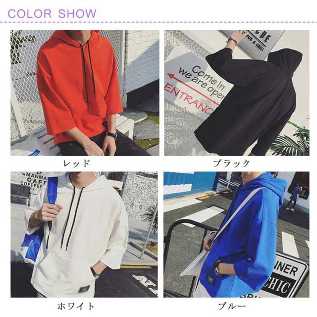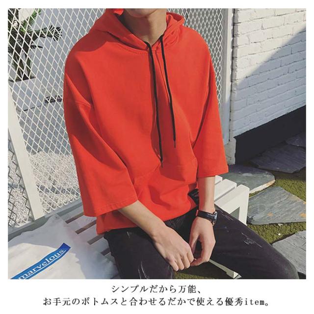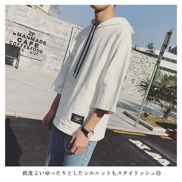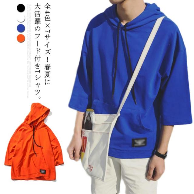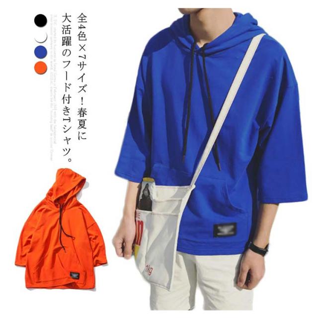 全4色×7サイズ!フード付きtシャツ メンズ トップス 七分袖 パーカー プルオーバー Tシャツ ビッグTシャツ 無地 カジュアル 夏服 大きサイズ メンズファッション