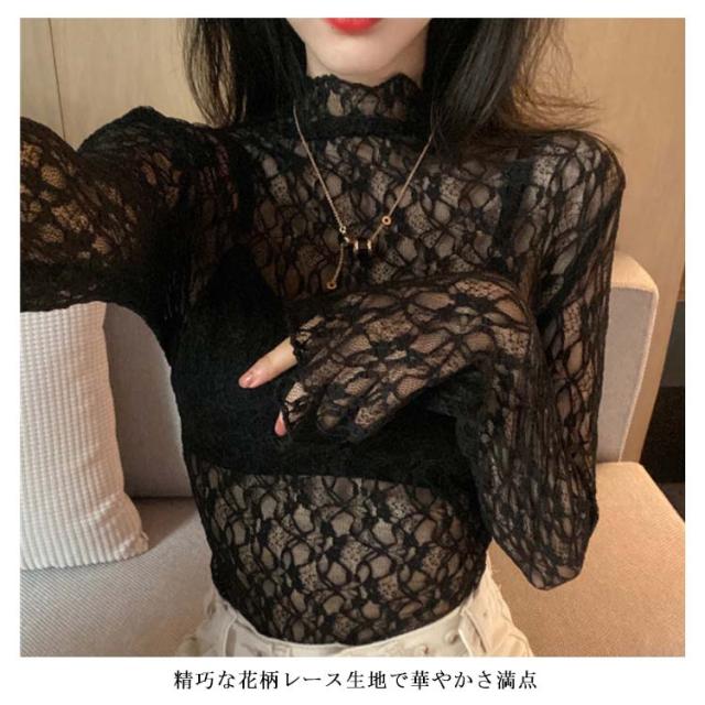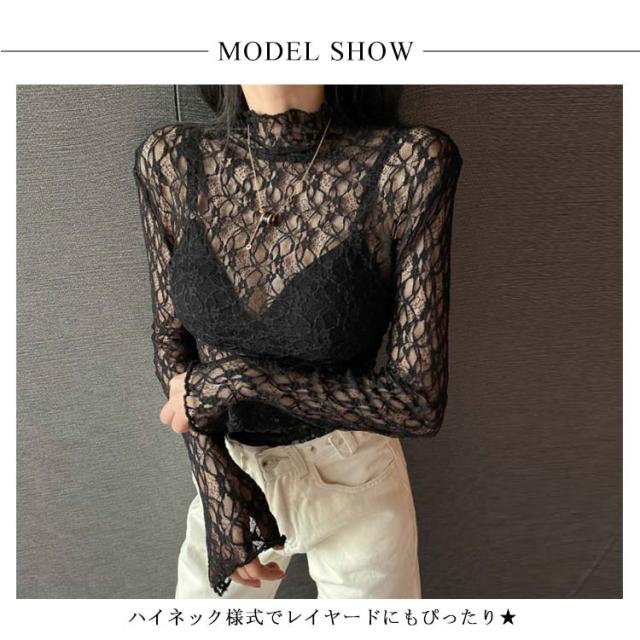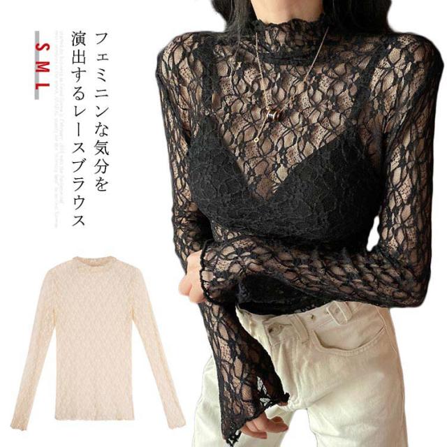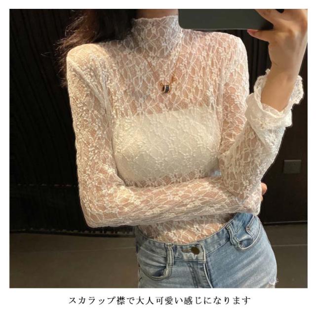 レースブラウス レディース ブラウス 長袖ブラウス 総レースブラウス レース ハイネック スカラップ エレガント 優雅 華やか セクシー お洒落 キレイめ トップス プルオーバー 春新作