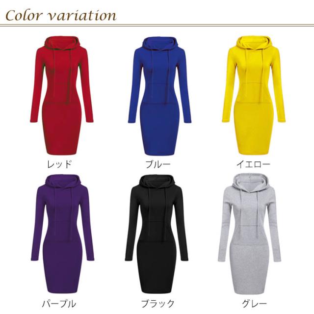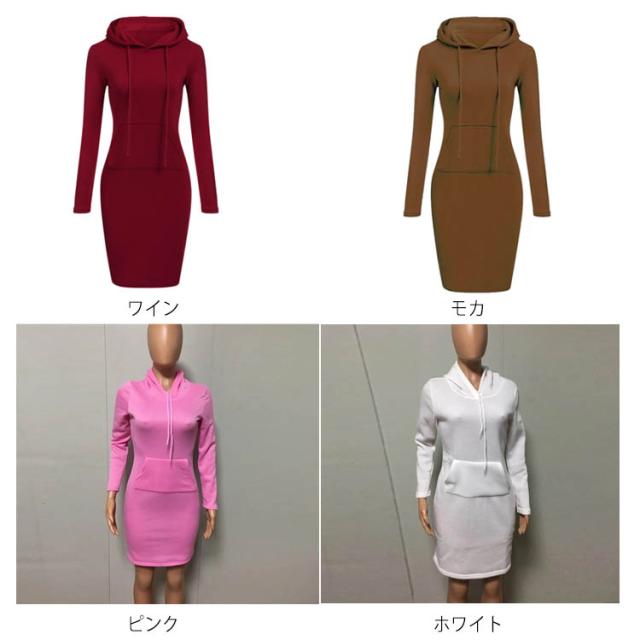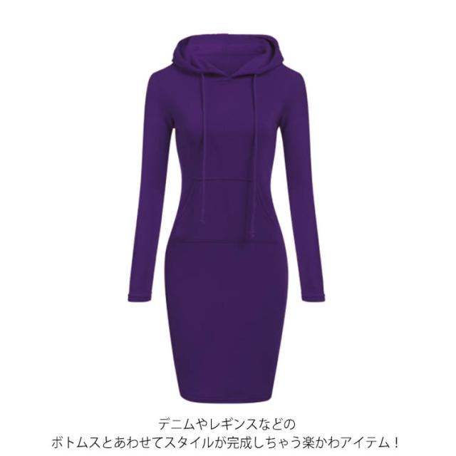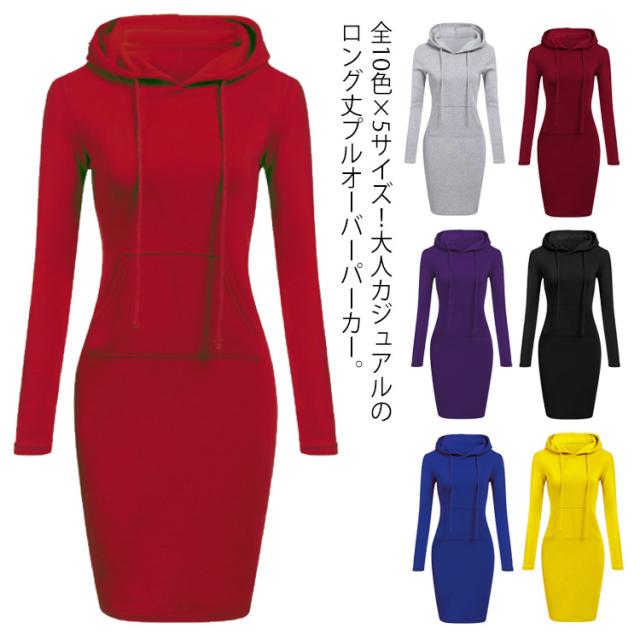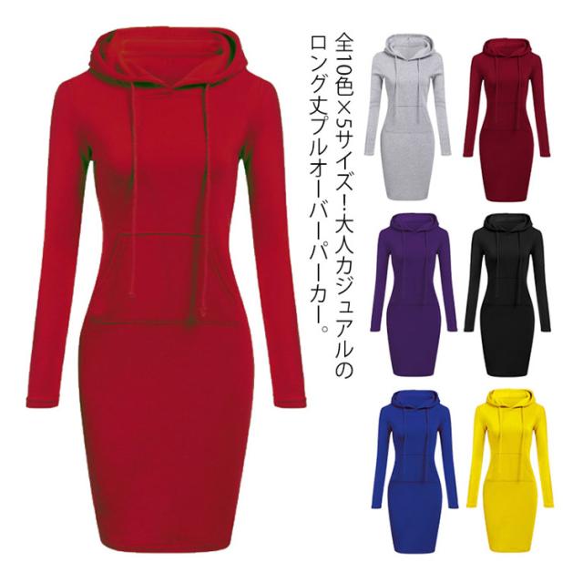 送料無料 全10色×5サイズ!パーカーワンピース パーカー ロング丈 レディース ロングパーカー フード付き パーカーワンピ プルオーバー カジュアル 大きサイズ 秋 冬