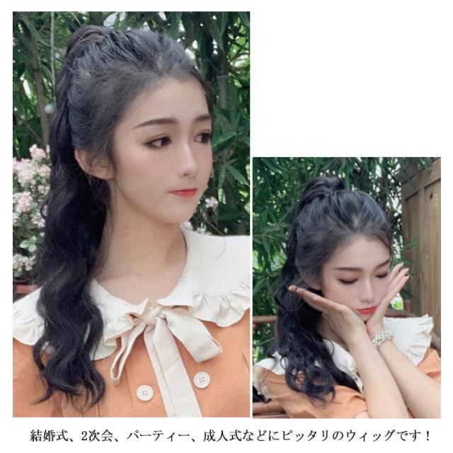 ロング ウィッグ ポイント ウィッグ ポニーテールウィッグ エクステ ウェーブ ポニーテール ウィッグ エクステ エクステンション 部分ウィッグ つけ毛 付け毛 ワンタッチ wig ウイッグ イベント コスプレ 仮装