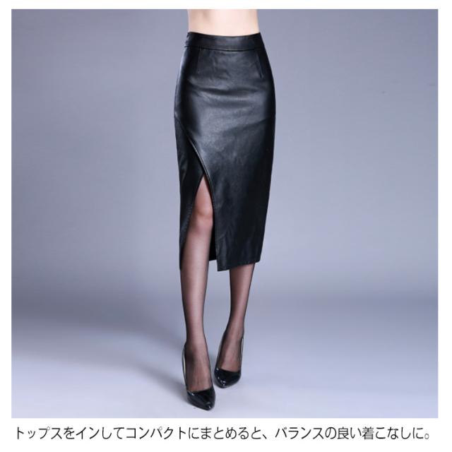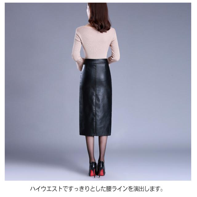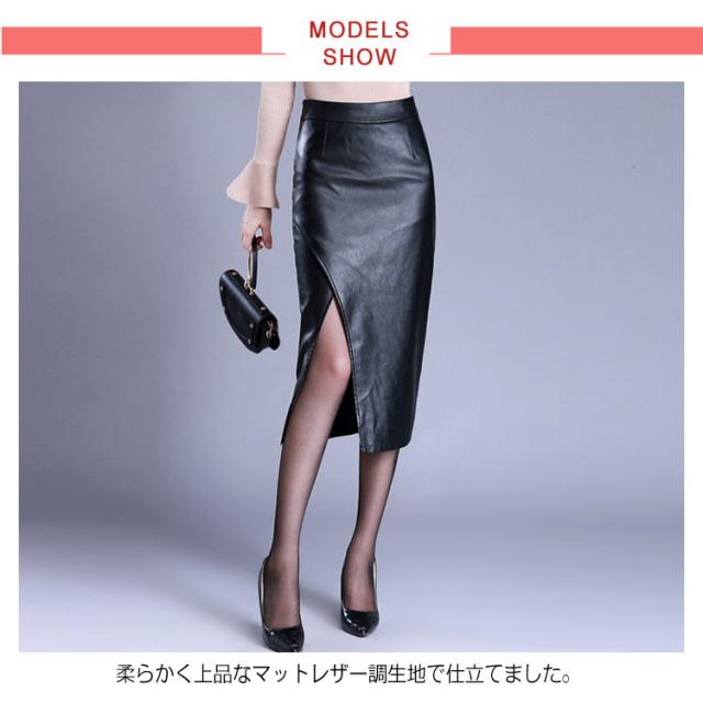 《送料無料》S-4XLサイズ!タイトレザースカート 大きサイズ スカート 秋冬 レザースカート フェイクレザー タイトスカートスリット 合皮 ミディアム 膝丈 オフィス 大人上品