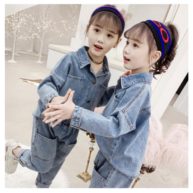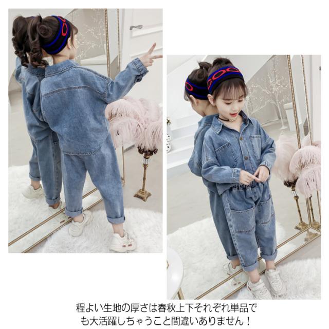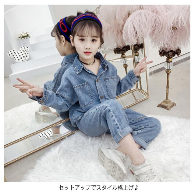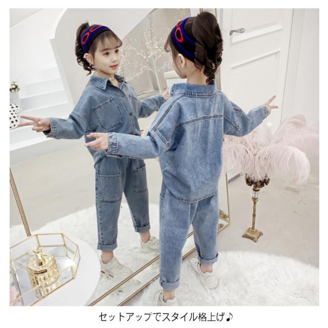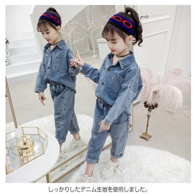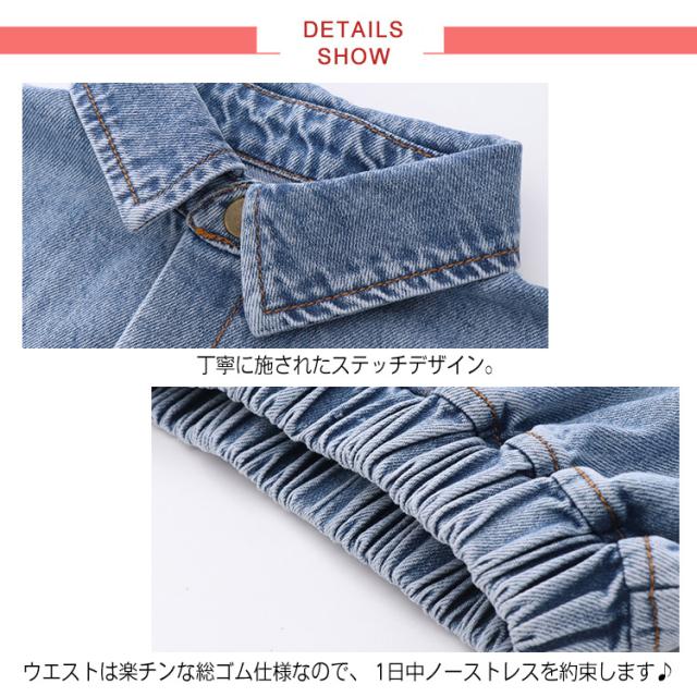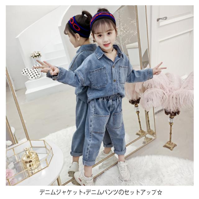 デニムジャケット+デニムパンツ 女の子 2点セット デニム セットアップ 上下セット デニムジャケット ジージャン Gジャン デニムパンツ デニム サルエルパンツ ユーズド風 子供 アウター 子供服 キッズ