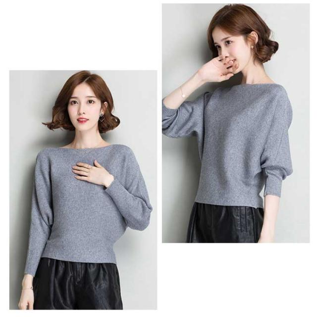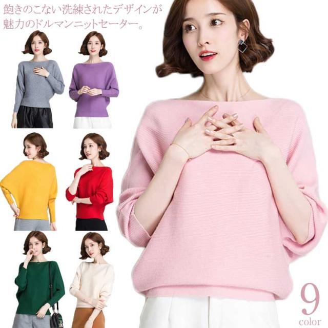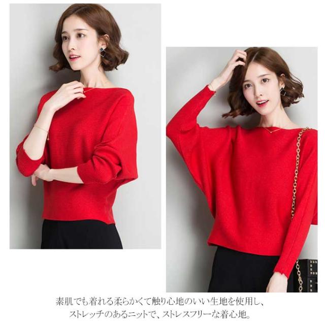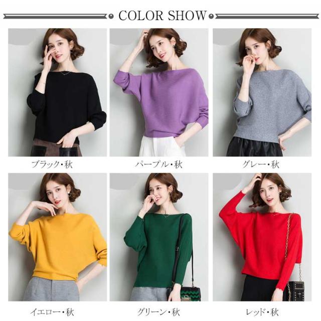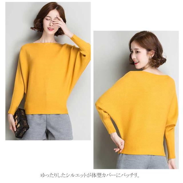 ニットトップス ニットセーター レディース ドルマンスリーブ ボートネック リブ編み ゆったり ゆるカジ ショート丈 長袖 セーター 無地 体型カバー 着痩せ 大きいサイズ ドルマン袖 秋冬 秋服 冬物 通勤 お出かけ