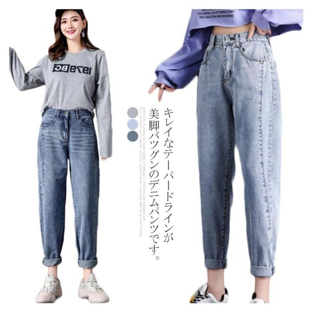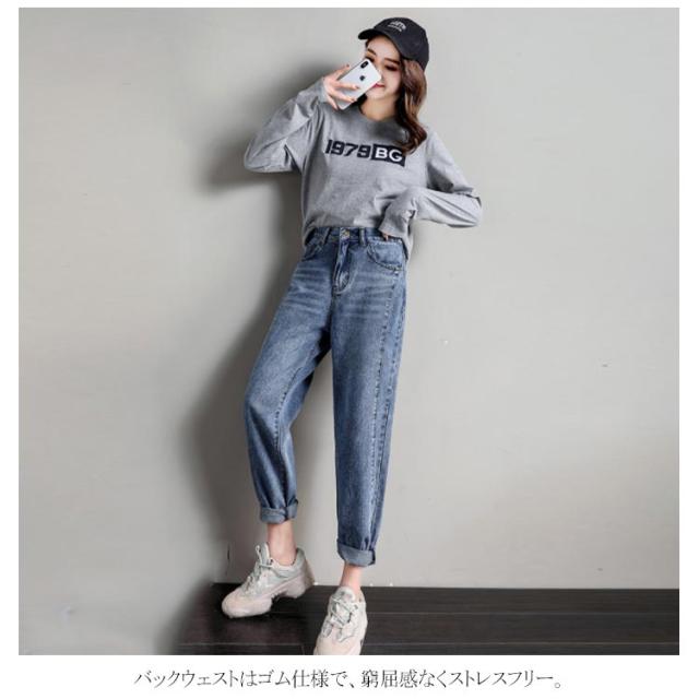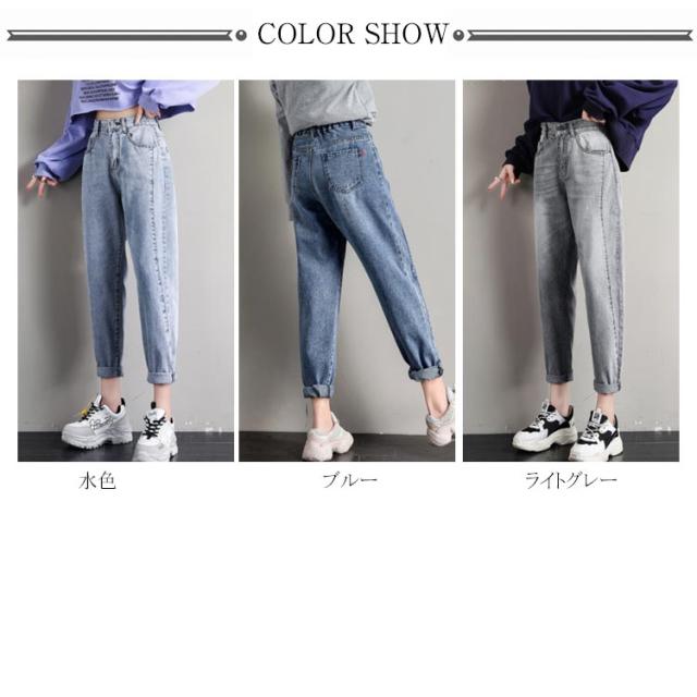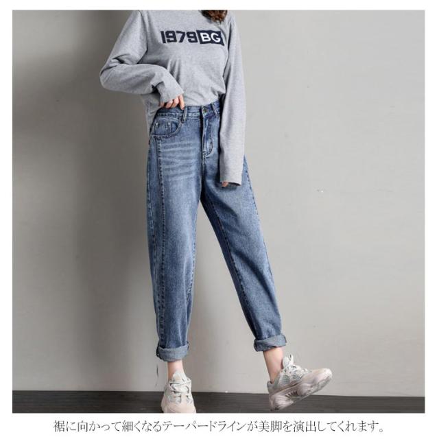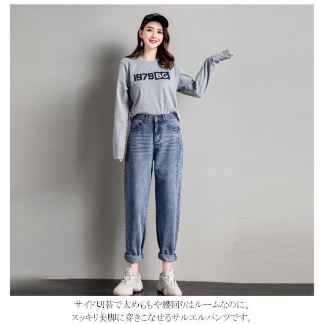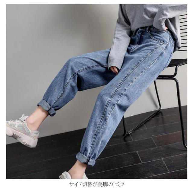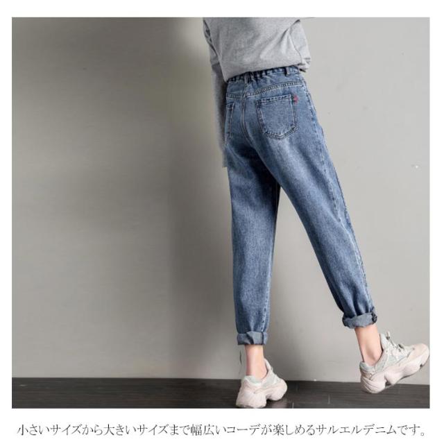 デニムパンツ サルエル デニム ジーンズ サルエルパンツ レディース 大きいサイズ 切替 ゆったり テーパードパンツ ボーイフレンドデニム レトロ バックウェストゴム サイドライン 2019新作 長ズボン アメカジ モード系 カジュアル