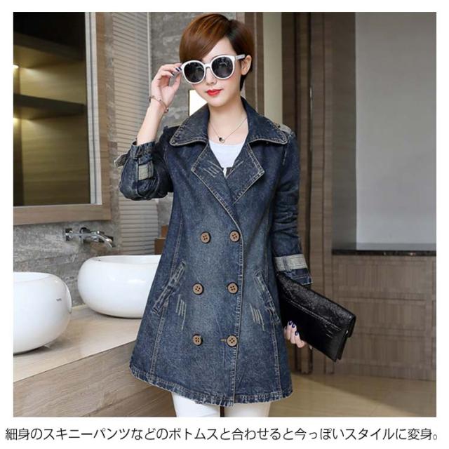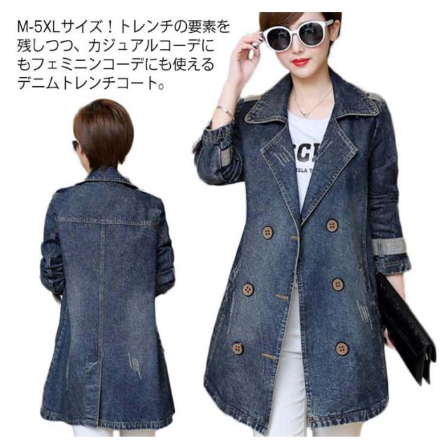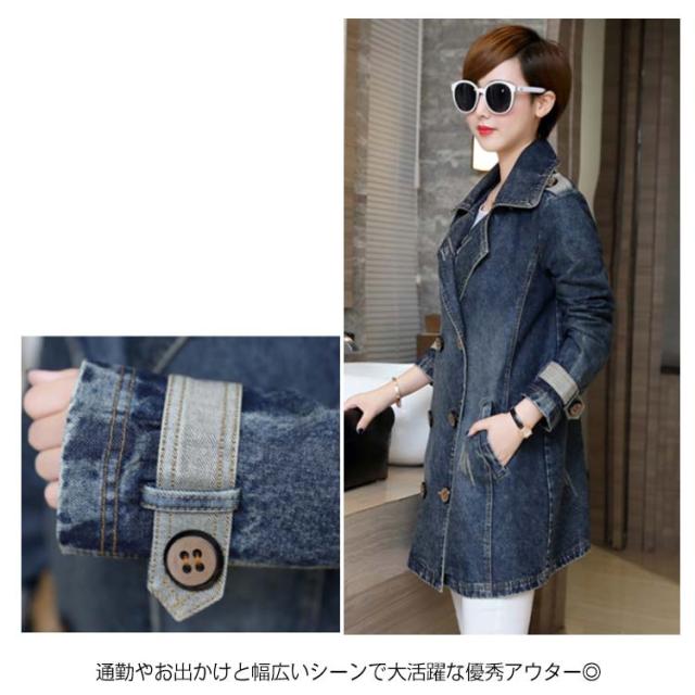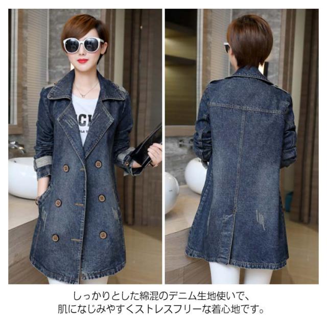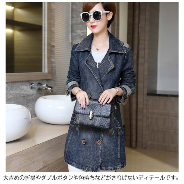 《送料無料》M-5XLサイズ!デニムコート デニム アウター トレンチコート スプリングコート ミディアム丈 デニムジャケット Gジャン ダブルボタン 折り襟 大きサイズ 通勤 上品 キレイめ